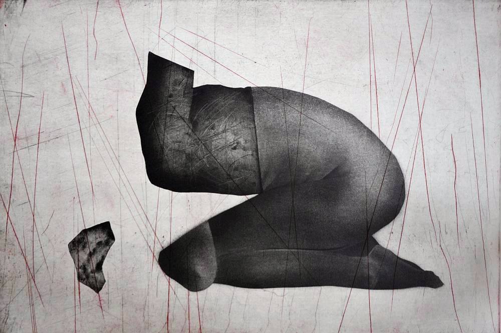 "Obcy to cykl graficzny powstały w roku akademickim 2013/2014 w pracowni wklęsłodruku u prof. Krzysztofa Tomalskiego. Jest to studium szeroko pojętej alienacji w stosunku do świata oraz społeczeństwa: szkic na temat tego rodzaju obcości, która rodzi się z poczucia, że nasza prawdziwa ojczyzna, nasze miejsce jest nie z stąd, nie z tego świata. Ci, którzy w tym poczuciu żyją – egzystują na swego rodzaju wygnaniu, na obczyźnie. Z tego zamysłu powstało czternaście grafik i sześć obrazów, próbujących ująć emocjonalną stronę wyobcowania. Poszukiwania zaczęłam od aspektu technicznego, sięgając po warsztat, który w swej technice mógł odzwierciedlać emocjonalny rozpad i niemożność odnalezienia się. Wykorzystanie potencjału ksera, offsetu, tinty piaskowej, monotypii, czy wreszcie klasycznej techniki wlęsłodruku. Wszelkie eksperymenty, których się podjęłam miały za zadanie zbliżyć mnie jak najbardziej oraz najwierniej do podjętej przeze mnie problematyki.