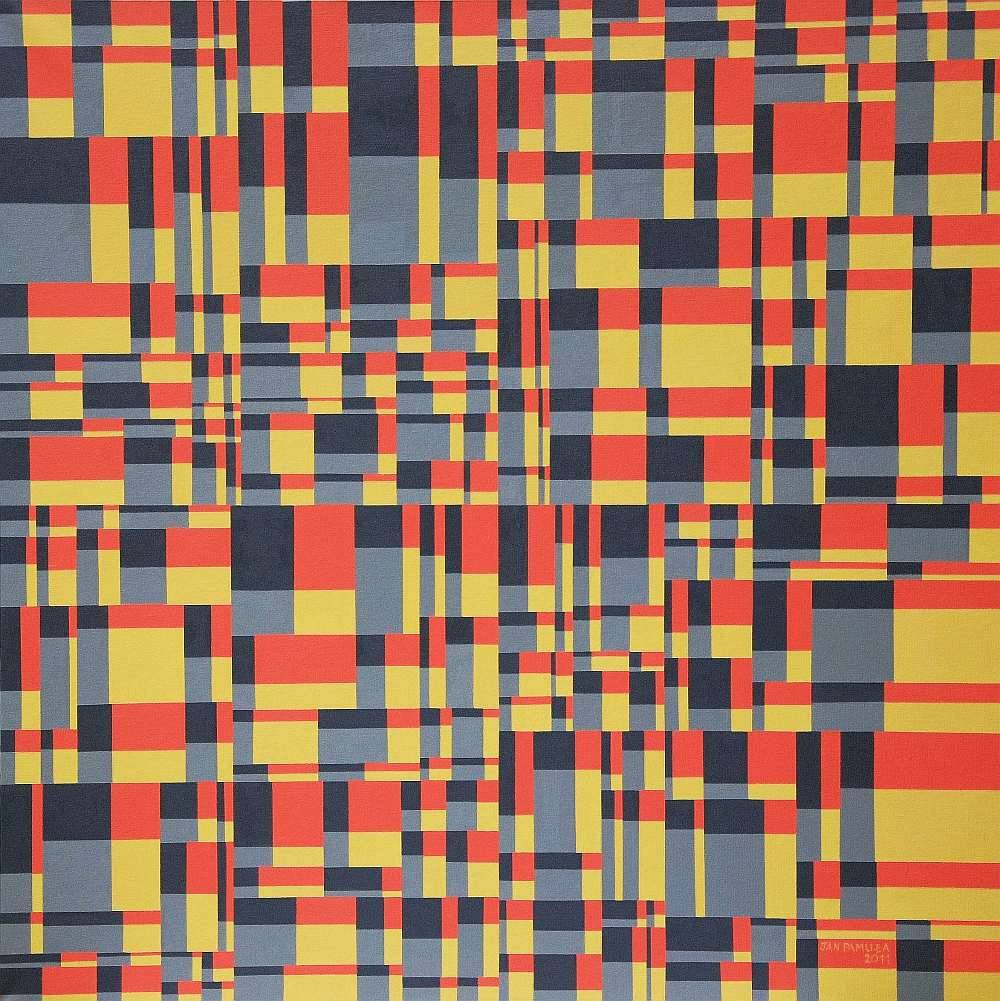 Precyzyjna, elektronicznie wyliczona wizja Pamuły ma w sobie iskrę szaleństwa, próbuje zilustrować mechanizm funkcjonowania rzeczywistości: zasadę łączenia jedności z niepowtarzalnością. Formuła ta staje się ilustracją ukrytego szyfru świata: podobną zasadą rytmu i cykliczności rządzi się czas, przestrzeń, muzyka, wiele procesów naturalnych, gdzie coś pomnaża się przez podział, rodzący nową jakość. Dzielenie nie jest tutaj destrukcją, ale konstrukcją, budowaniem. Paradoksalnie - przy całym rygorze kompozycji, światy stwarzane przez malarza są zaskakująco rozmaite. Zmienność skali, dyspersji (rozpiętości między najmniejszym i największym elementem), dobór kolorów (odmienny każdorazowo zestaw 4 barw) - daje niewyczerpalną ilość możliwości. Zamiast wrażenia ascezy czy apodyktycznej dyscypliny, uderza dynamika barwnych form, ich „rozgadanie”, Rytmiczna segmentacja prostokątów raz promieniuje harmonią, zmuszając do koncentracji, innym razem budzi niepokój; migotliwa wibracja jest źródłem energii, rozdrobnienie form czasem cieszy i śmieszy, czasem obsesyjnie przykuwa uwagę.”