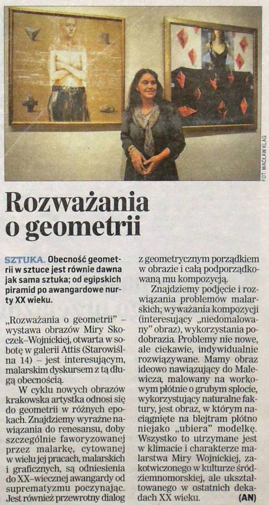 Jolanta Antecka, Rozważania o geometrii, „Kronika Krakowska”, [w:] „Dziennik Polski”, nr 224, 26.09.2011, s. 4.