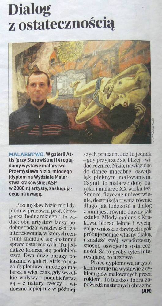 W galerii Attis (przy Starowiślnej 14) oglądamy wystawę malarstwa Przemysława Nizio, młodego (dyplom na Wydziale Malarstwa krakowskiej ASP w 2008 r.) artysty, zasługującego na uwagę.