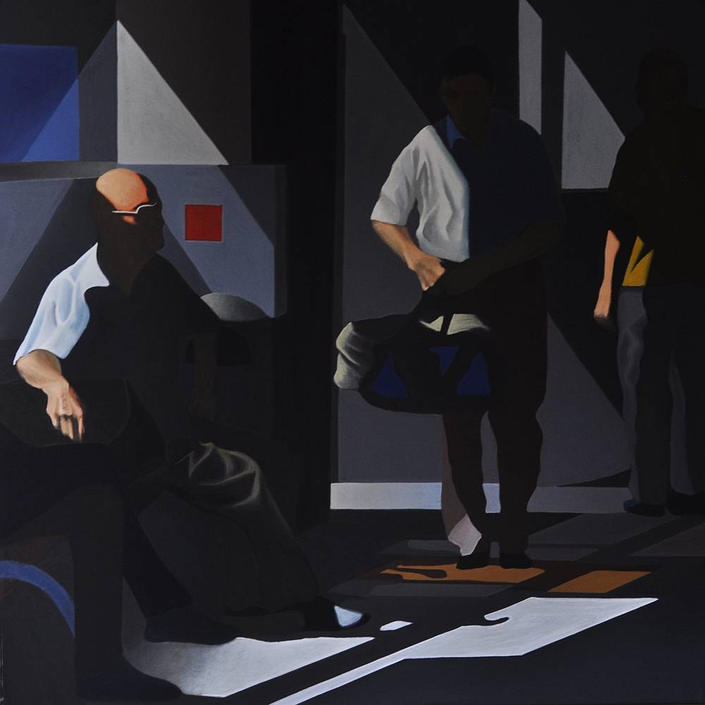 Dariusz Milczarek, Poczekalnia II, (2014), tempera żółtkowa, płótno, 90 x 90 cm.