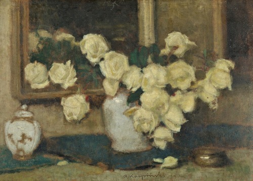 Malarz tworzył również prace ukazujące zwierzęta domowe oraz dekoracyjne martwe natury, które cechuje obecność kwiatów i porcelanowej zastawy.