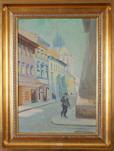 Alfred Terlecki urodził się 1883 roku, zmarł 1973 roku w Zakopanem. Studiował w Akademii Sztuki Pięknych w pracowni Leona Wyczółkowskiego oraz Józefa Mehoffera. W latach 1915-1919 pracował jako nauczyciel rysunku w Zakopanem. Należał do ZPAP oraz TZSP. Malował głównie dekoracyjne pejzaże tatrzańskie i weduty, podejmował również tematykę portretu i aktu. Zajmował się też sztuką drzeworytu. Wystawiał w kraju i za granicą, np. w Rzymie i Moskwie. Prace artysty znajdują się m.in. w kolekcji Muzeum Tatrzańskiego w Zakopanem, Muzeum Narodowego w Krakowie.