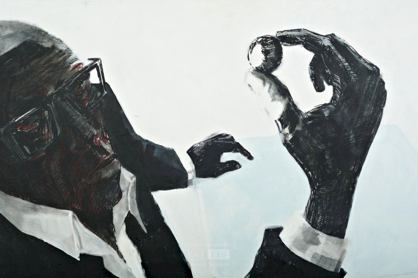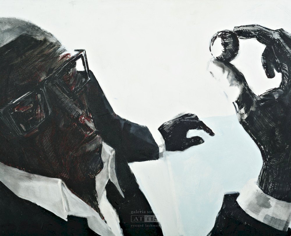 "Jazda na motocyklu jest rodzajem pasji. Podczas niej następuje totalne odcięcie się od spraw życia codziennego. Jak powiedział mi jeden z miłośników jazdy na dwóch kółkach – człowiek podróżując motocyklem chłonie bardziej wszystko wokół. Motocyklistą jest też Andrzej Franaszek. Artysta urodził się w 1964 roku w Krakowie. Studiował na Wydziale Rzeźby na Akademii Sztuk Pięknych w Krakowie. Dyplom obronił w pracowni prof. Mariana Koniecznego w 1989 roku. Artysta w swojej twórczości porusza tematykę społeczno-polityczną. Cechami charakterystycznymi jego malarstwa są deformacje postaci oraz odrealnione kolory." (Agnieszka Stefańczyk)
