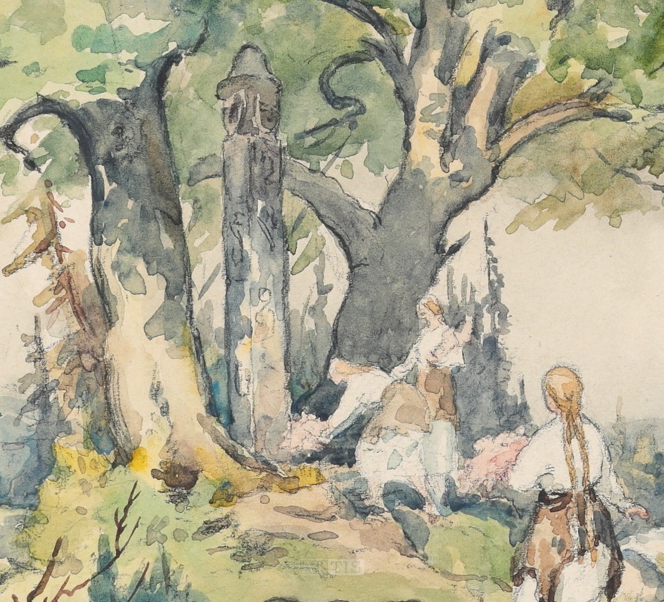 | Technika: | akwarela, ołówek, papier naklejony na tekturę |
