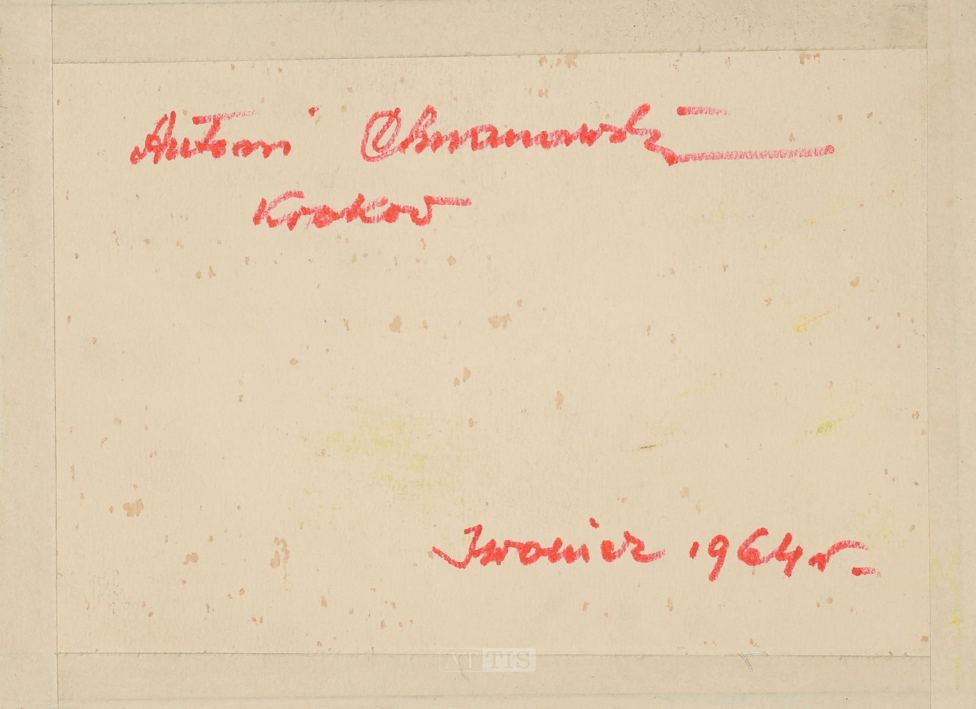 | Sygnowany i opisany ołówkiem l.d.: "Chrzanowski Antoni | Iwonicz 1964." Opisany na odwrocie: "Antoni Chrzanowski | Kraków | Iwonicz 1964 r." | |
