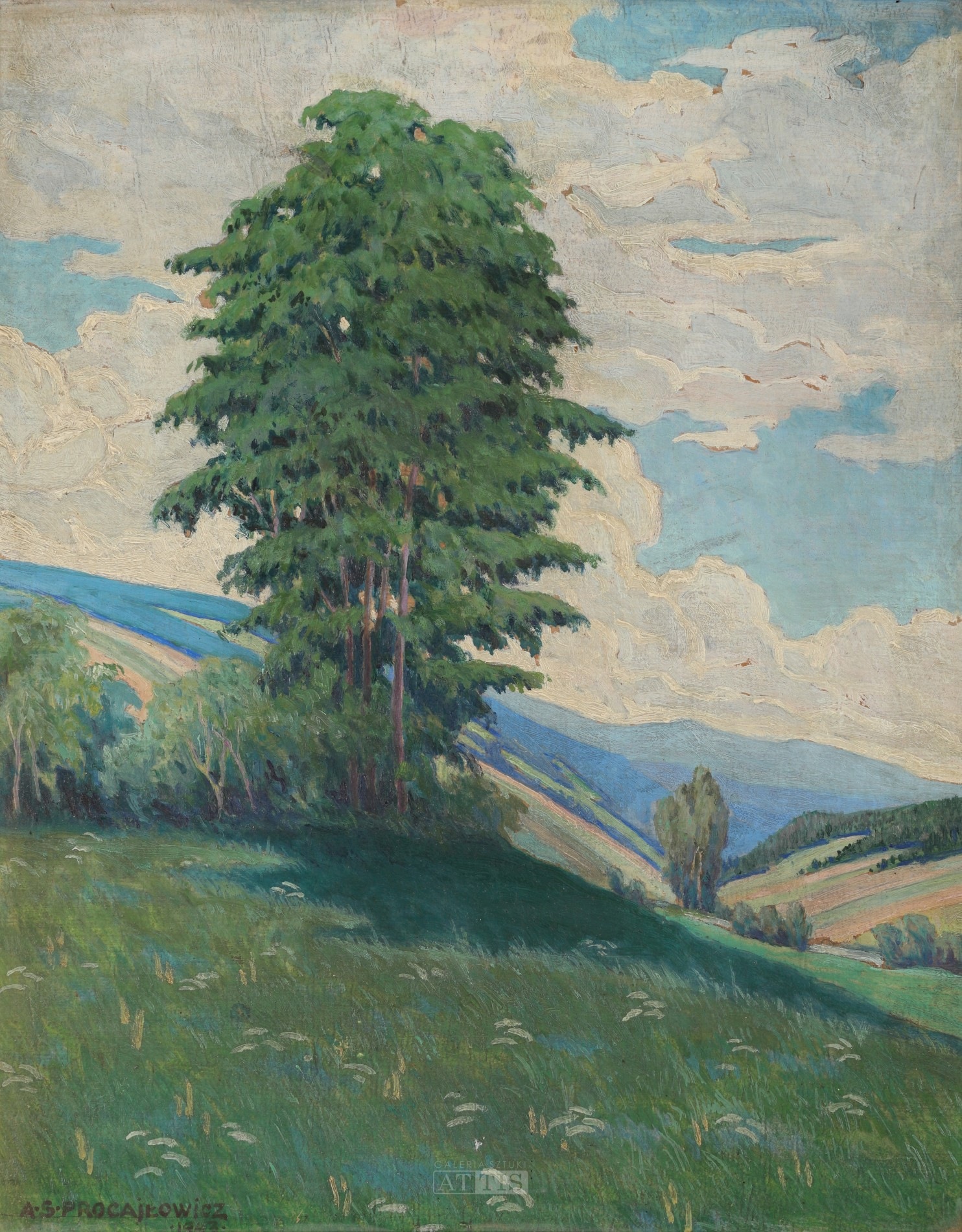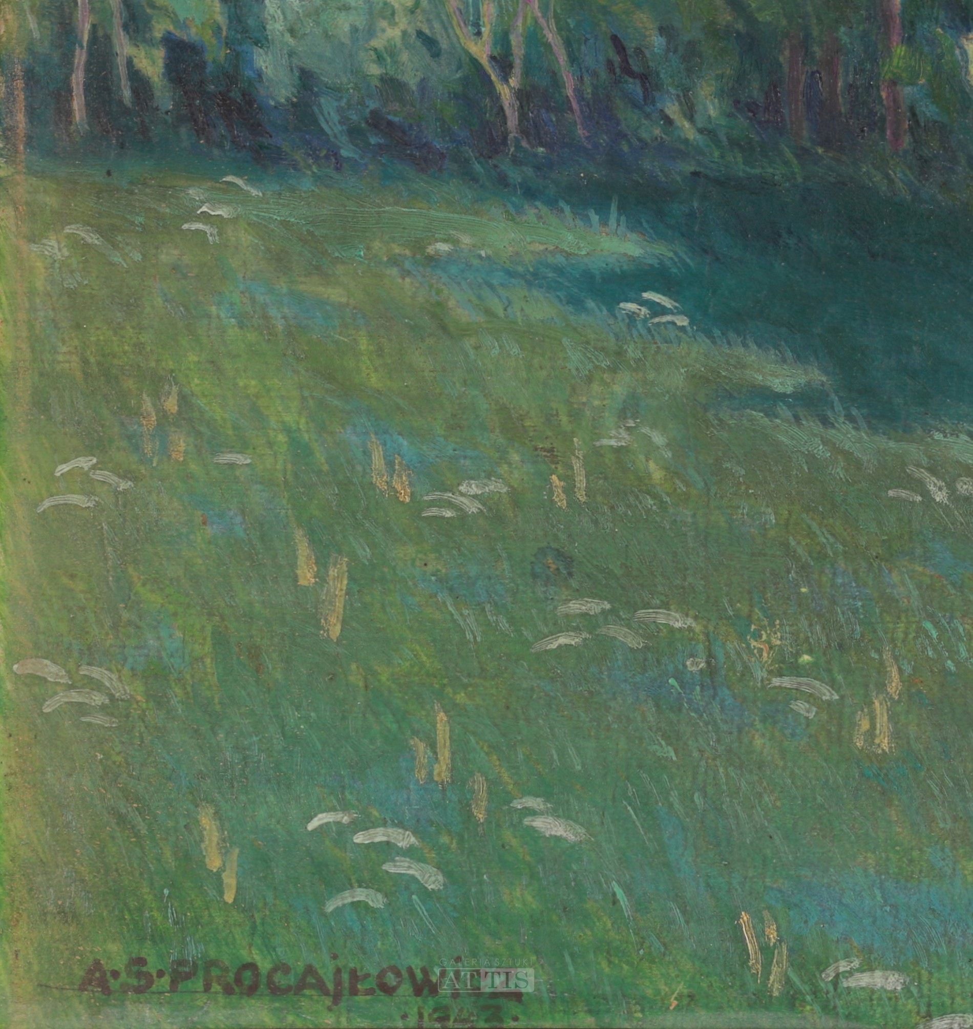 | Sygnowany i datowany l.d.: "A‧S‧PROCAJŁOWICZ | ‧1943‧" Widoczne zabrudzenie malatury. | |