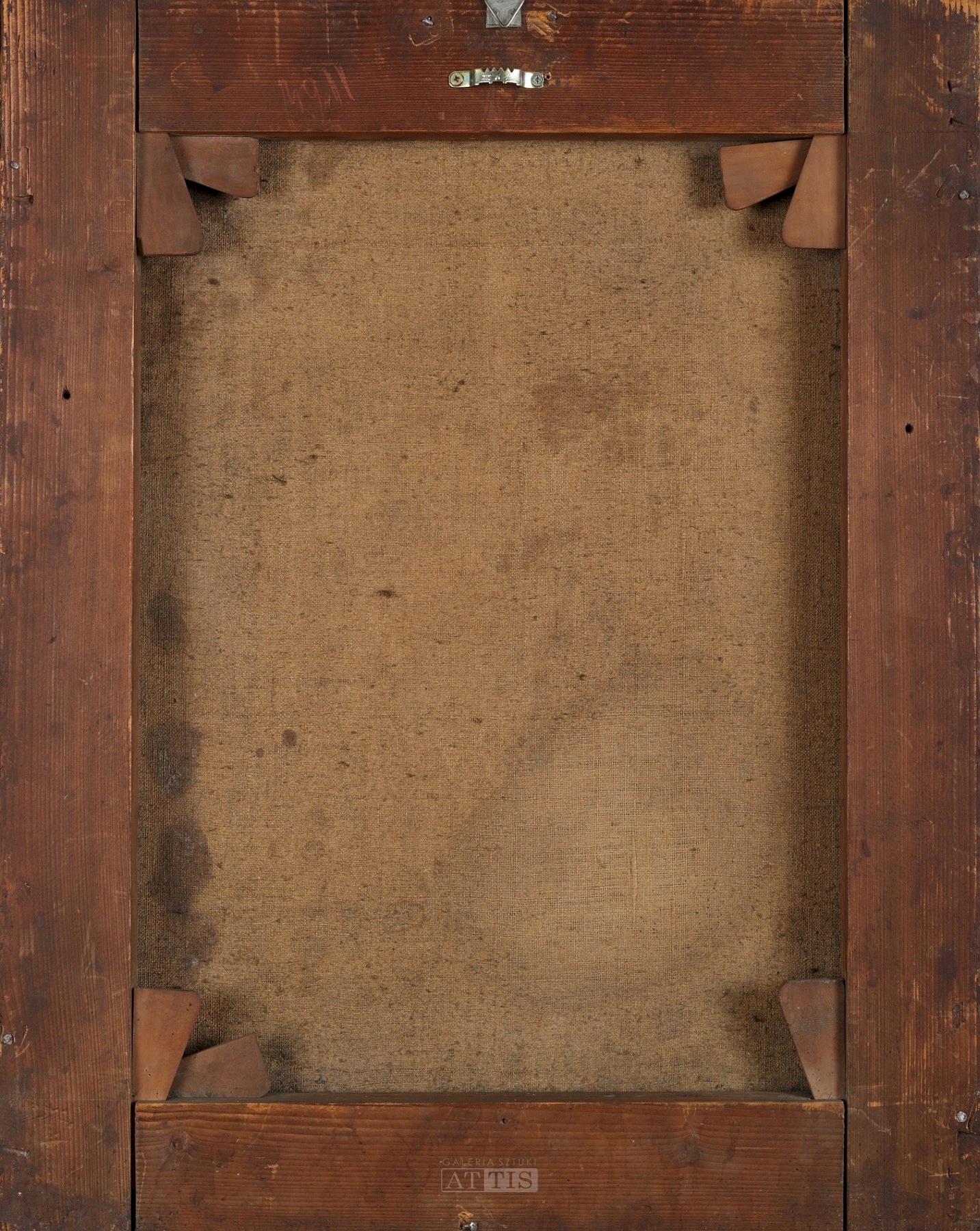 | Widoczne zabrudzenie warstwy malarskiej. | |
