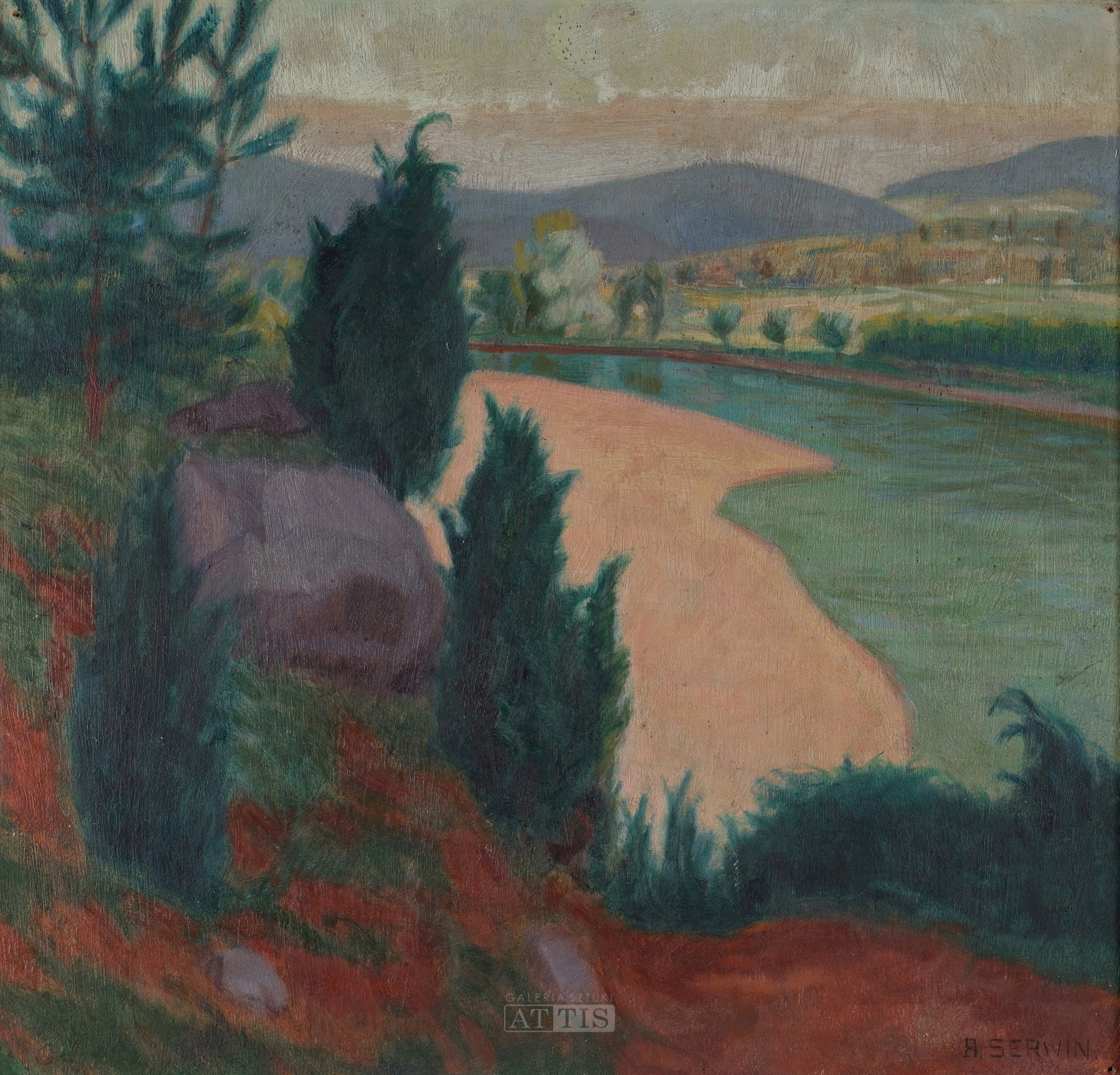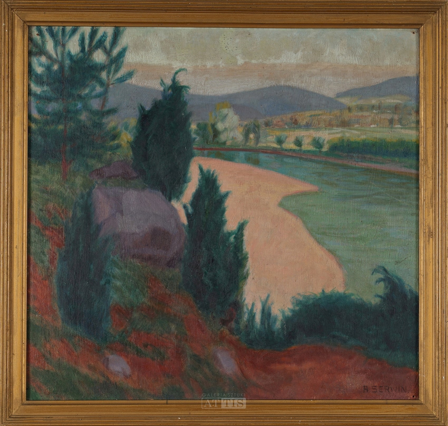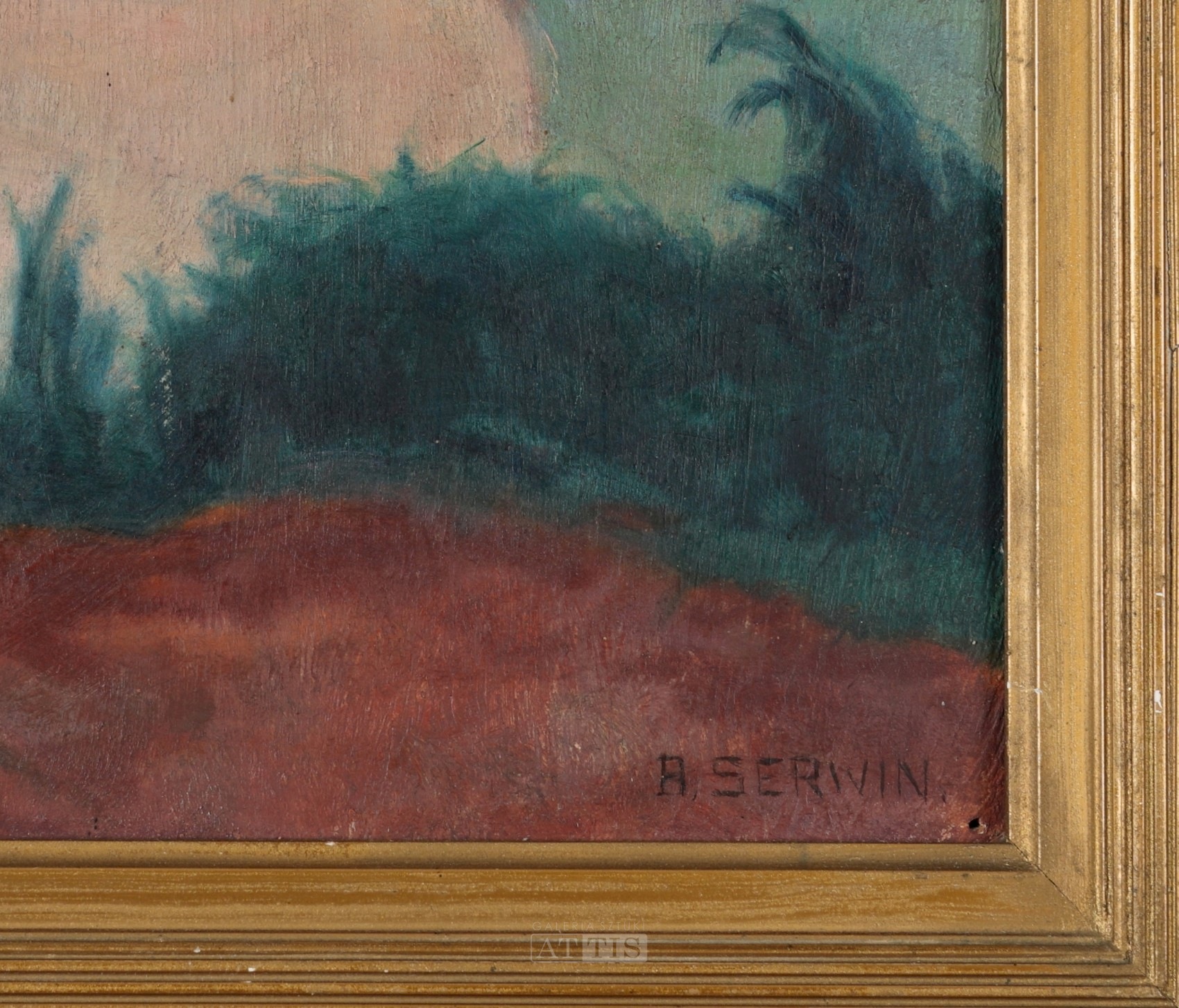 | Sygnowany p.d.: "B. SERWIN" Na odwrocie szkic malarski pejzażu. | |