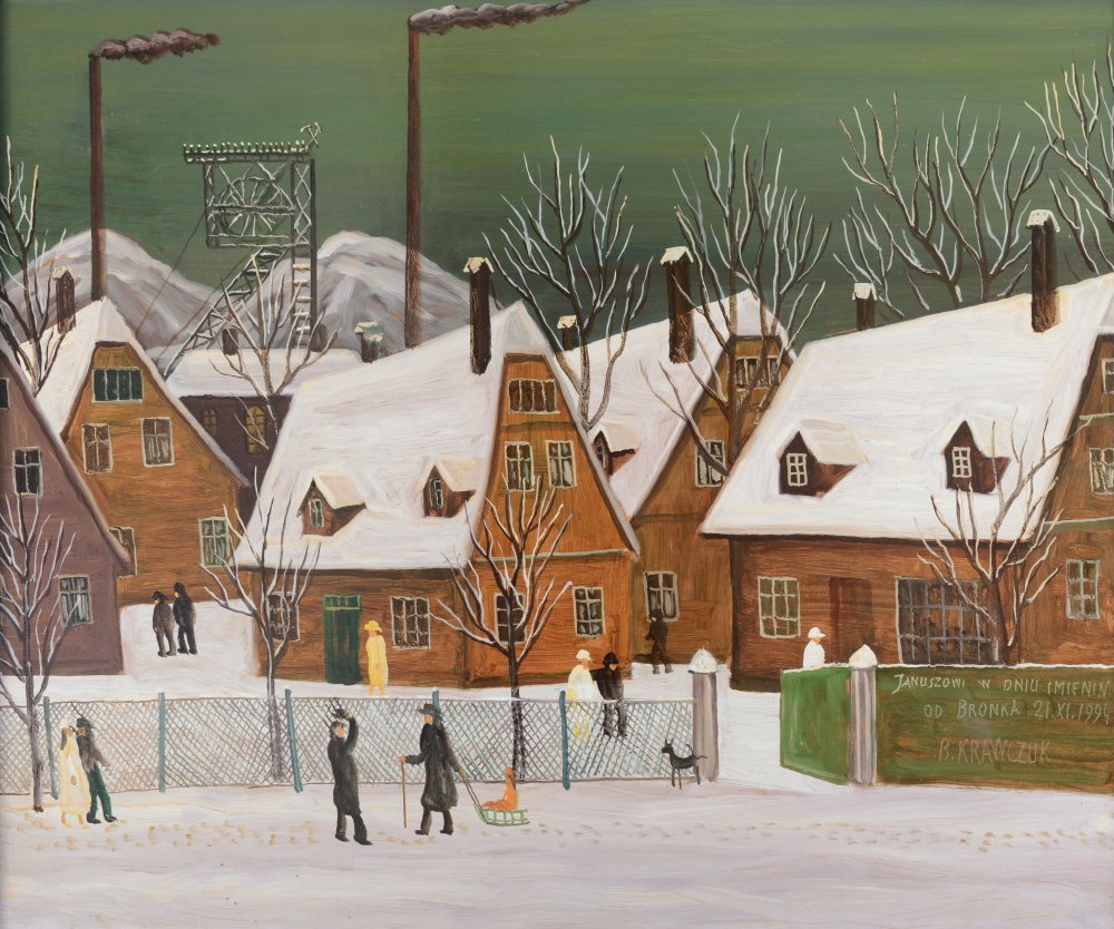 Bronisław Krawczuk urodził się 24 grudnia 1935 roku w Panasówce k. Tarnopola na Podolu, zmarł w 1995 roku w Gliwicach. Na skutek przeżytej w dzieciństwie choroby przez całe życie cierpiał na niedowład lewej części ciała, co uniemożliwiło mu podjęcie studiów artystycznych w szkole plastycznej w Kosowie, był więc przedstawicielem sztuki naiwnej.