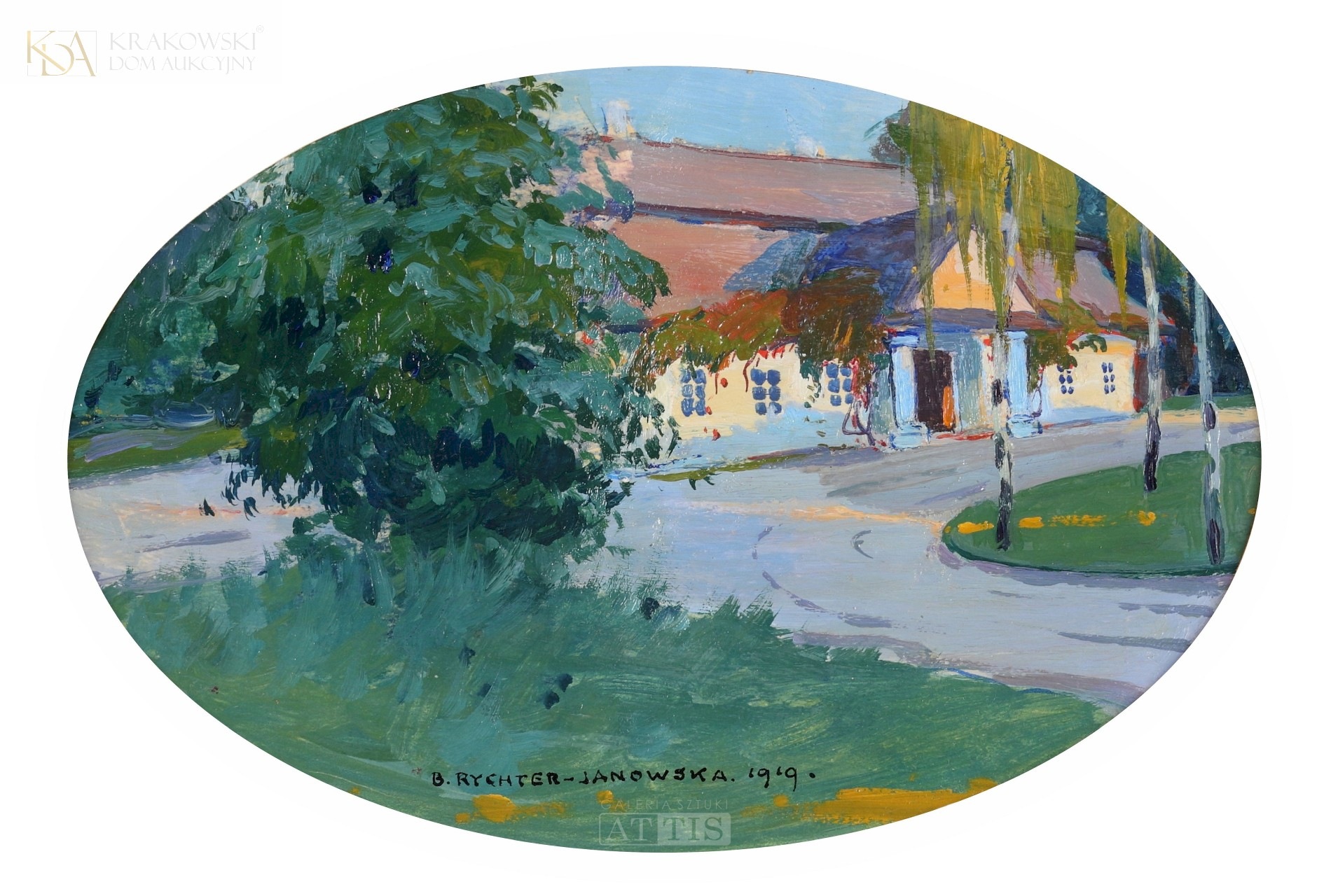 | Sygnowany i datowany śr.d.: "B. RYCHTER-JANOWSKA.1919." Opisany na odwrocie: "Z serdecznem życze- | niem Szczęścia | Br RychterJanowska" Obraz został sprzedany na 42. Aukcji Dzieł Sztuki Krakowskiego Domu Aukcyjnego (10 XII 2024) [ZOBACZ WYNIKI] | |