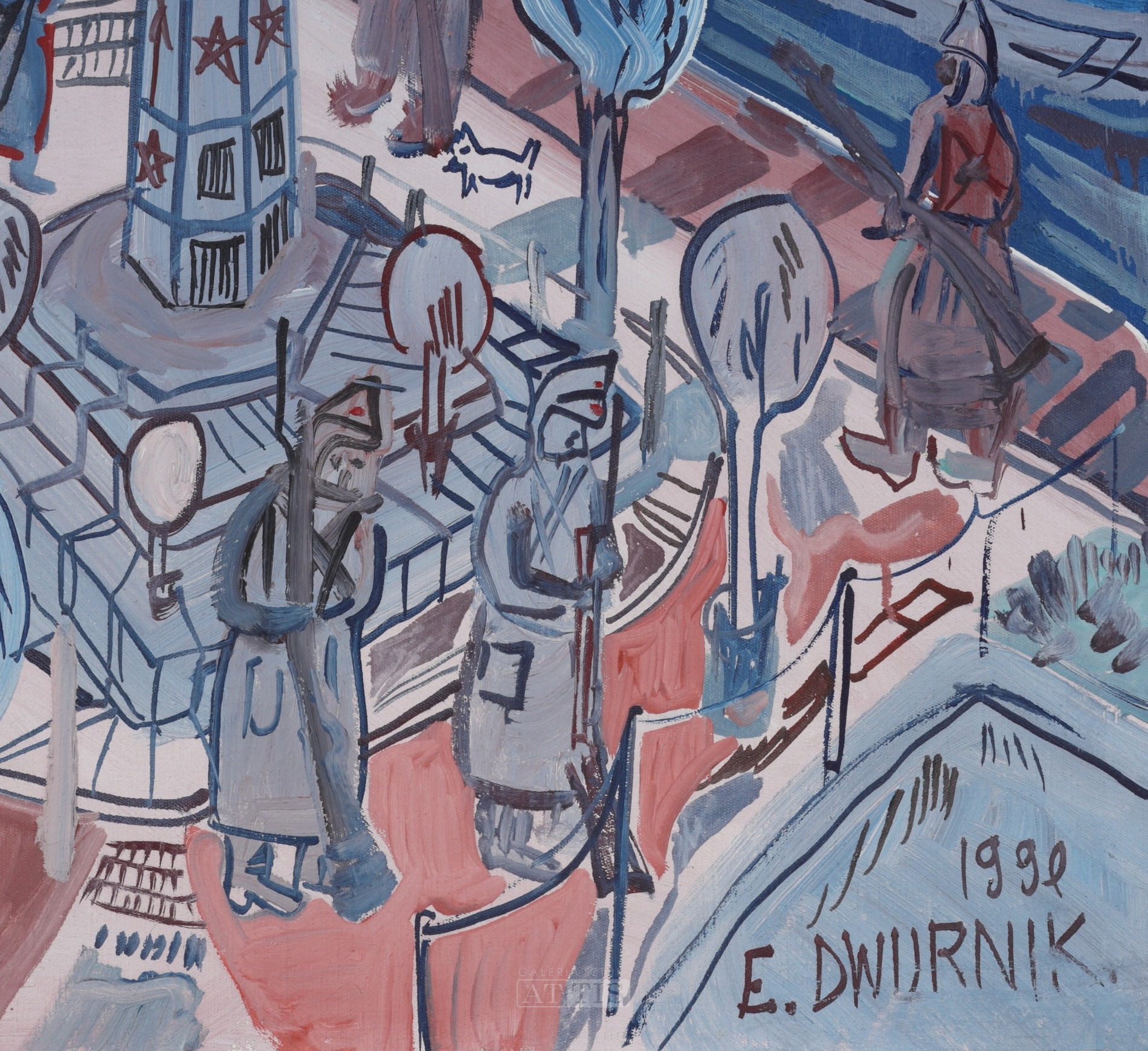 | Sygnowany i datowany p.d.: "1990 | E. DWURNIK" Opisany l.d.: "RYMANÓW" Opisany na odwrocie: "1990 | E. DWURNIK | NR: IX.420.1390 | RYMANÓW" | |