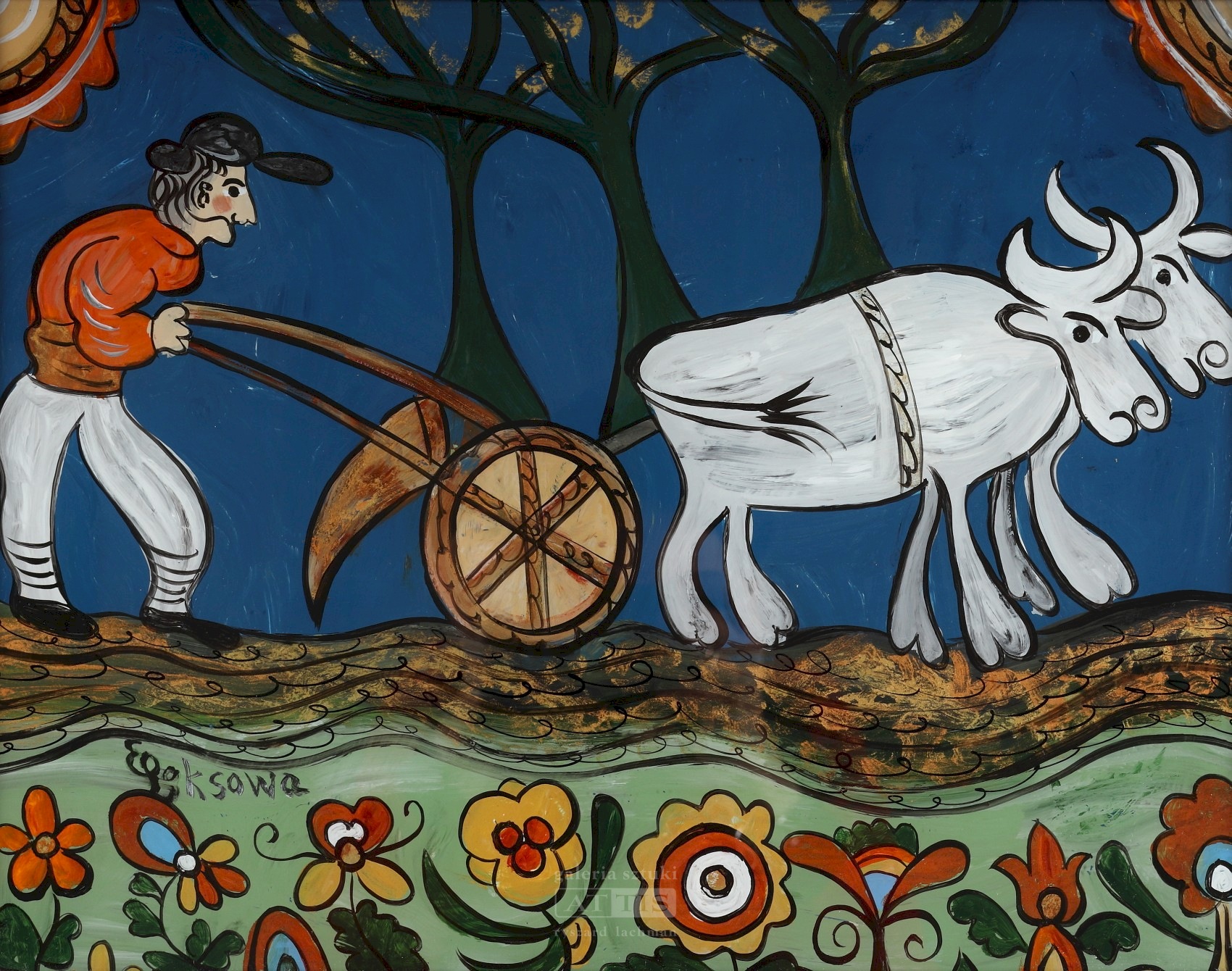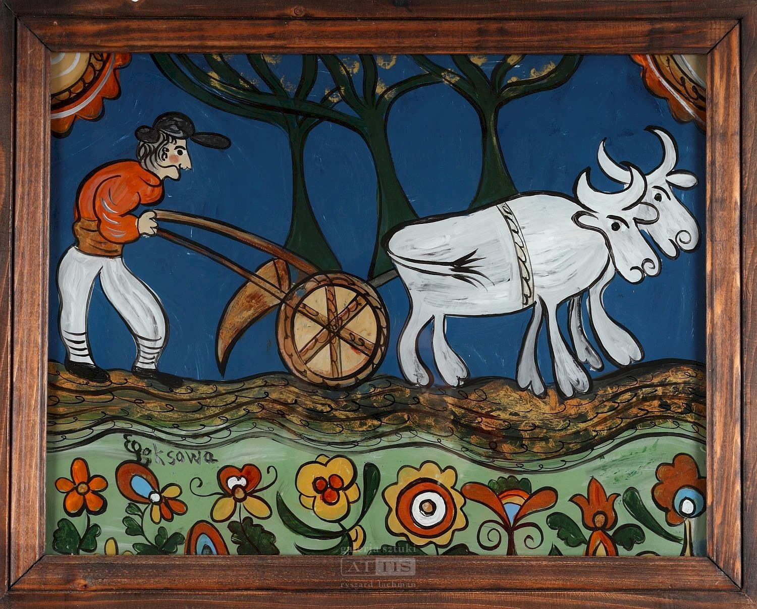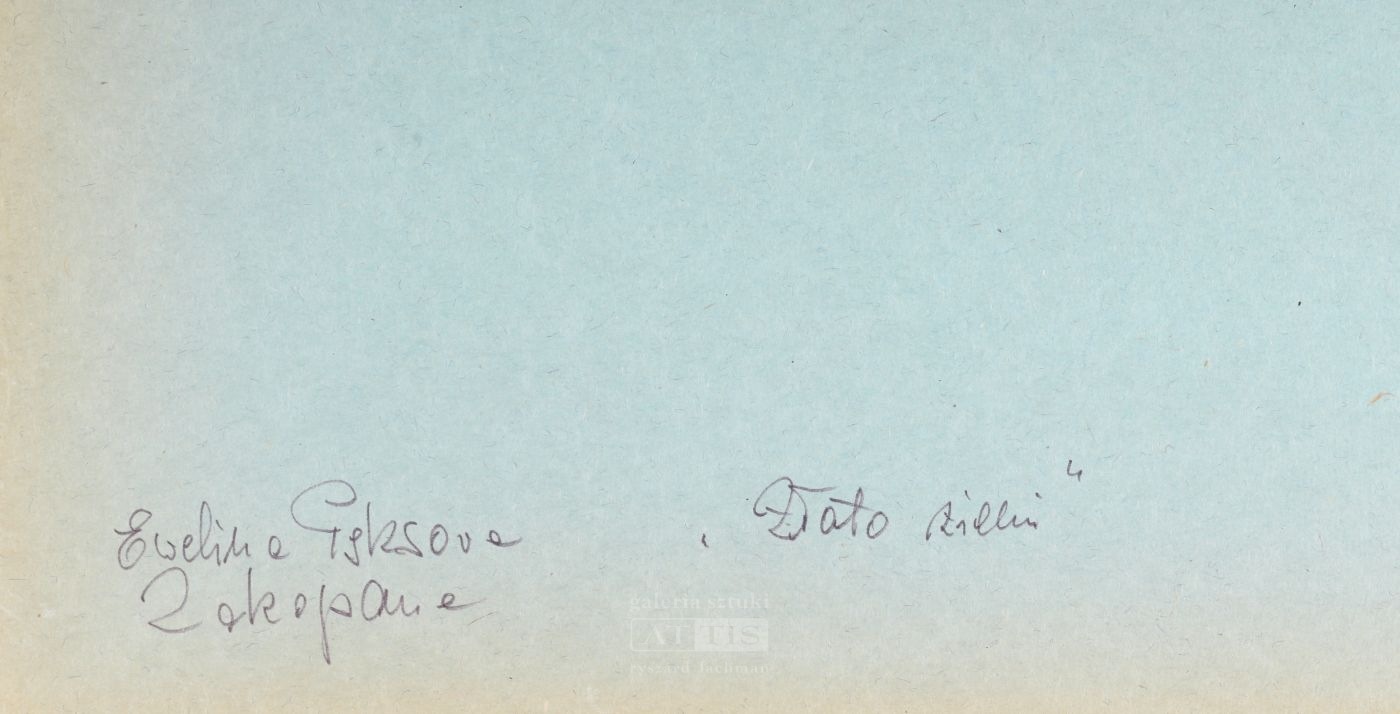 | Sygnowany l.d.: "EPęksowa" Opisany na odwrocie: "Ewelina Pęksowa | Zakopane", "Złoto ziemi" Obraz został sprzedany w ramach XVII Aukcji Dzieł Sztuki Krakowskiego Domu Aukcyjnego: Sztuka ludowa i prymitywizm (18 VIII 2022) [ZOBACZ WYNIKI] | |