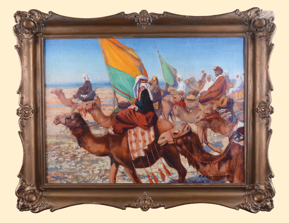 Dobrym przykładem twórczości artysty o tematyce orientalnej jest praca "Sprzedawca i dziewczyna". Malarz przedstawił młodą dziewczynę, rozmawiającą ze sprzedawcą dywanów i biżuterii, który prezentuje jej złoty naszyjnik. Postacie są ukazane w orientalnych strojach, a znajdująca się w tle para ludzi, zabudowania i roślinność oddają niepowtarzalny nastój Bliskiego Wschodu.