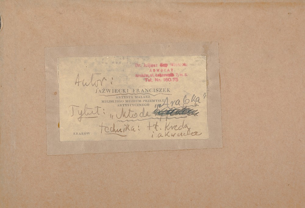 | Sygnowany p.d.: "Fr Jaźwiecki" Na odwrocie metka z opisem. | |