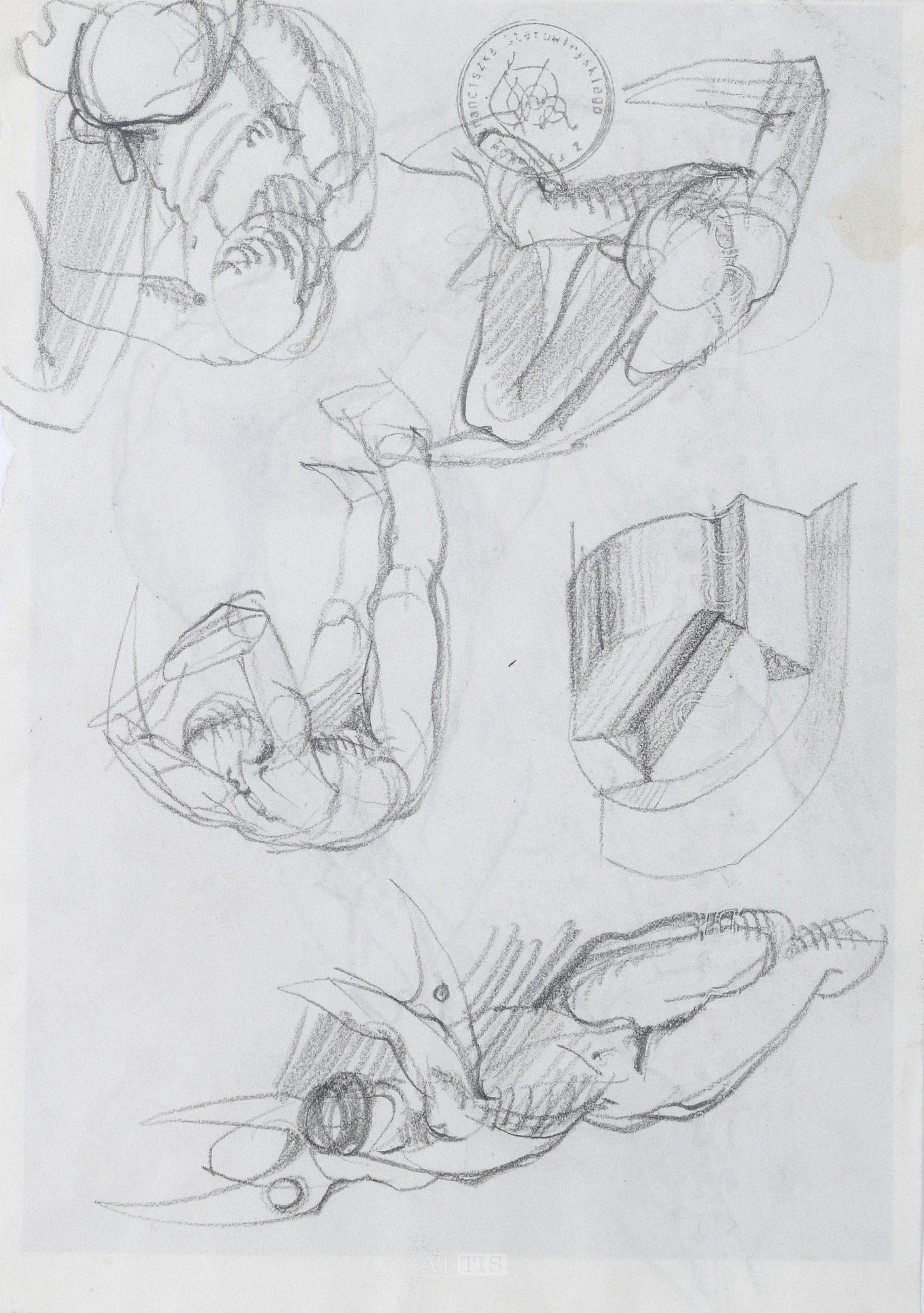 | Na stronie ze studiami śr.g. okrągła pieczątka "Z rysunków Franciszka Starowieyskiego" z monogramem wiązanym. Do rysunku dołączony certyfikat autentyczności wydany przez syna artysty - Jana Mikołaja Biberstein-Starowieyskiego. | |