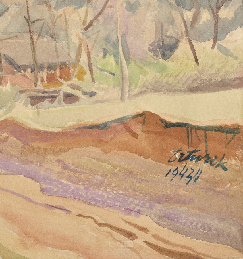 | Sygnowany i datowany p.d. "FrTurek | 19434" Opisany l.d.: "Z najszczerszymi | życzeniami | [nieczytelne]" Na odwrocie opisany ołówkiem: "Kwitnąca Jabłoń | gdzie dziś wyznaczono ulicę | imienia Michała Bałuckiego | w tyle zabudowania [nieczytelne] | przy ul. Król. Jadwigi -" | |