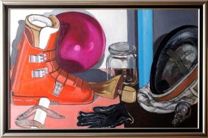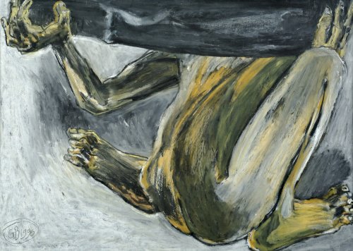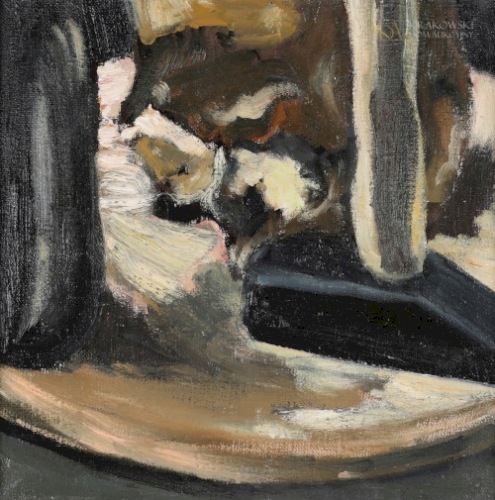 Artysta tworzy także prace tłustym pastelem oraz wykorzystuje technikę kolażu.