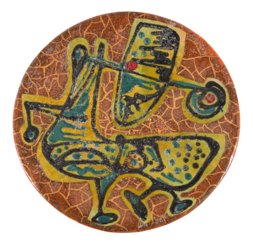 Helena Husarska urodziła się w roku 1922, zmarła w roku 2009. Studiowała rzeźbę na krakowskiej Akademii Sztuk Pięknych. Jej mężem był rzeźbiarz Roman Husarski. Oboje prowadzili eksperymenty ceramiczne, opracowując m.in. technikę piropiktury, polegającą na natryskiwaniu szkliwa na silnie rozgrzaną powierzchnię. Ceramiczne dekoracje w tej technice znakomicie dopełniały estetykę modernistycznej architektury.