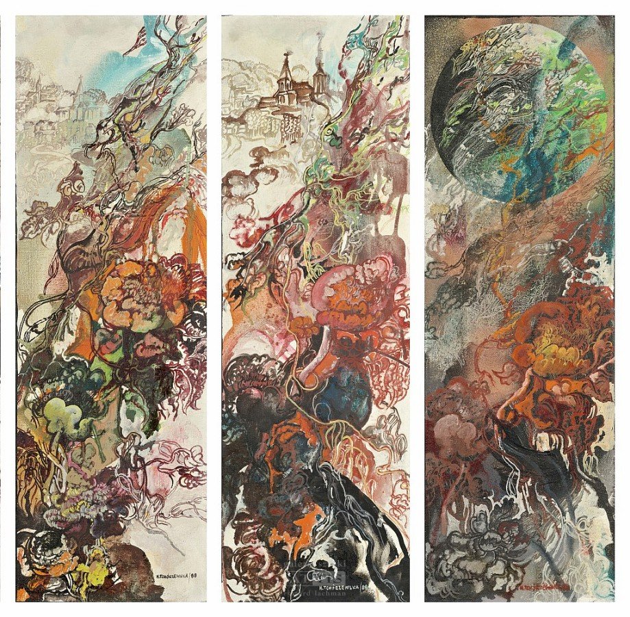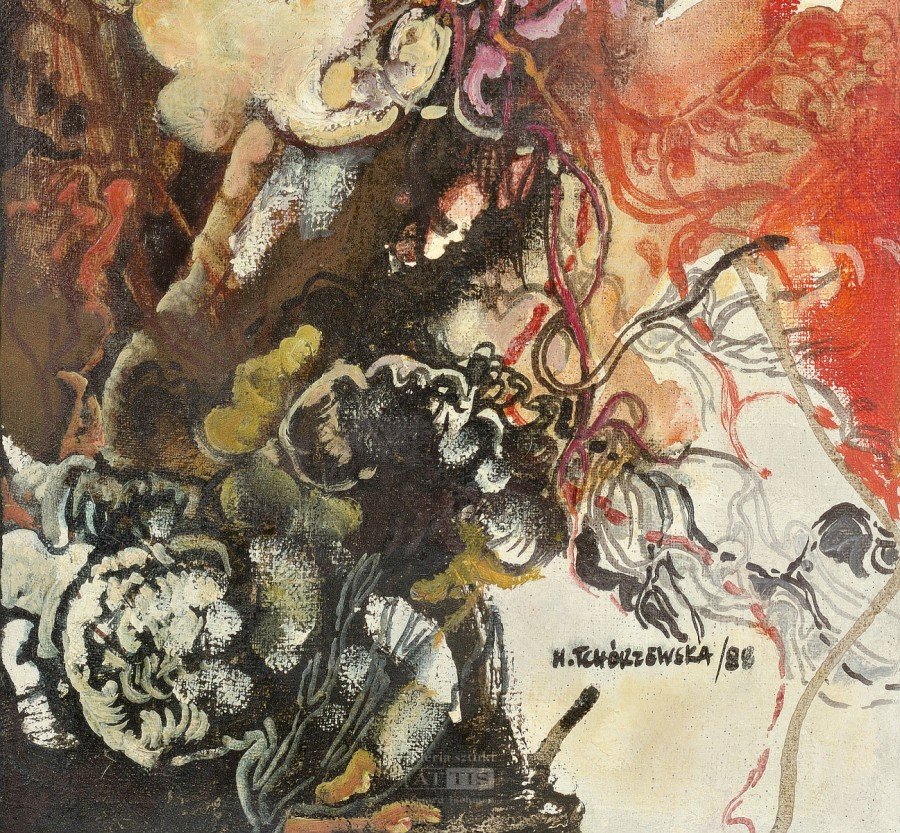 | Sygnowany i datowany p.d.: "H.TCHÓRZEWSKA / 88" (każdy) Każda z prac opisana na odwrocie: "H. TCHÓRZEWSKA | "KOMPOZYCJA KWIATOWA" (numer I-V)" | |