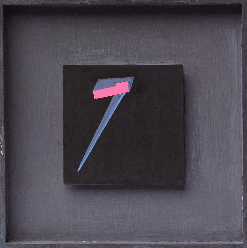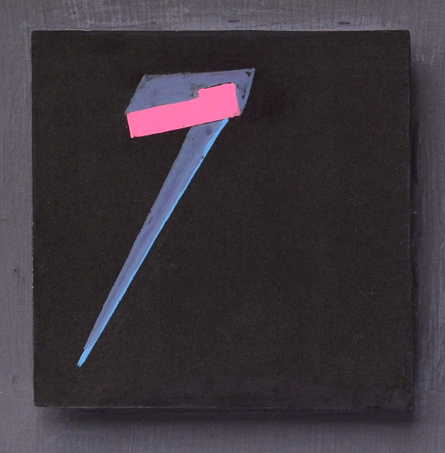 | Opis na odwrocie l.g.: "AS 4" [cyfra w kółku], śr. g.: "1985 | H. Stażewski" Henryk Stażewski w 1970 r. zorganizował pierwszy (i jedyny) w swojej twórczej karierze happening "9 promieni światła na niebie". Od tego czasu także w jego twórczości malarskiej coraz częściej zaczęły pojawiać się promieniste kształty i wydłużone trójkąty. Niezwykle aktywnie artysta rozwijał te motywy od początku lat 80., czego naocznym przykładem jest prezentowany obraz "AS 4" (1985). Dominującym elementem tej pracy jest przecinający kompozycję na skos ostry kształt, który nadaje dynamiki tej prostej i geometrycznej kompozycji. Niewątpliwie elementem, który ożywia całość i przyciąga wzrok jest różowy akcent w górnej części. Tę samą kompozycje dostrzegamy w większej pracy artysty, którą widzimy na fotografii przedstawiającej artystę w swojej pracowni przy Al. Solidarności 64 w Warszawie (zdjęcie pochodzi z archiwum Muzeum Sztuki Nowoczesnej w Warszawie). Prawdopodobne jest, że artysta początkowo wykonał prezentowaną pracę AS 4 (1985), natomiast później powtórzył ten temat w już w większym formacie. | |