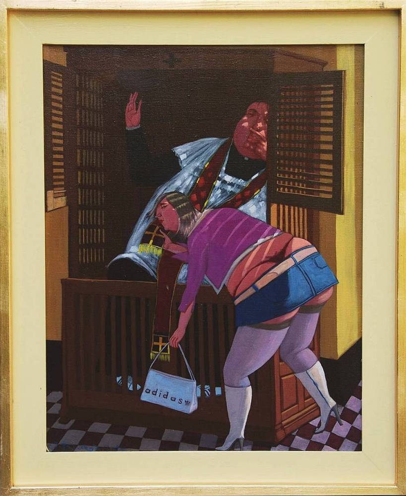 "Jacek Pałucha (ur. 1966) jest obecnie jednym z najciekawszych polskich malarzy młodego pokolenia. Rozpoczął swoją artystyczną karierę jako muzyk, wokalista i lider znanego poprockowego zespołu "Formacja Nieżywych Schabuf" (1982-88). Od pierwszej wystawy indywidualnej (Paryż-Piment Galerie 1993) jeszcze w czasie studiów na wydziale malarstwa warszawskiej ASP, jego pokazy prac są nieustającym pasmem sukcesów. Jego obrazy podobają się, budzą ciekawość, są kupowane na licznych indywidualnych wystawach. Prace artysty znajdują się w najlepszych kolekcjach. Odbiera pochwały od publiczności, a co ważne zbiera dobre recenzje od krytyków sztuki. Jego styl i ekspresja malar-ska jest rozpoznawalna. Pałucha w swoich obrazach "wczuwa się w klimaty" polskiej obyczajowości ostatniej dekady dwudziestego wieku. Ta oryginalna twórczość stała się obiektem różnorodnych komentarzy, opinii i oczekiwań na nowe realizacje. Niektóre jego prace wywołują spory, również z gatunku obyczajowych : "Człowiek sukcesu" 1997, "Widok z gniazda jadowitych ptaków" 1996; "Wizyta agenta ubezpieczeniowego znoszącego jaja" 1997."