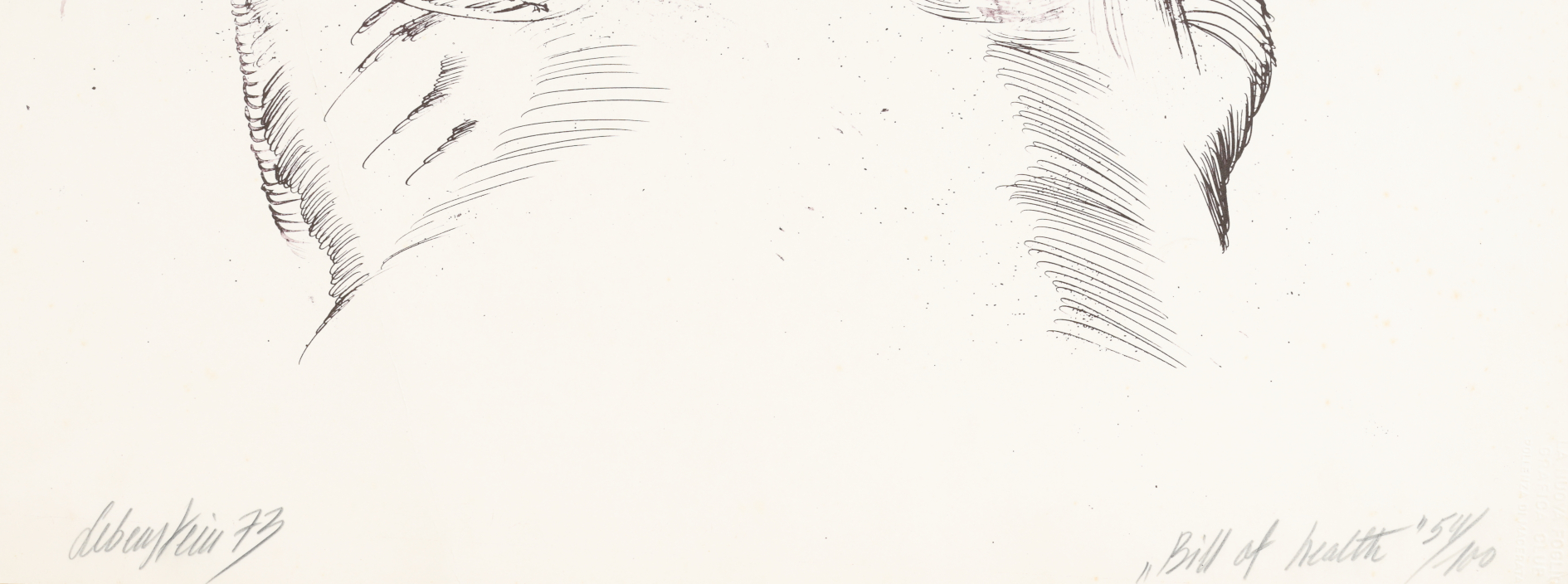 | Sygnowana i datowana ołówkiem l.d.: "Lebenstein 73" Opisana ołówkiem l.d: "Bill of health 54/100" | |