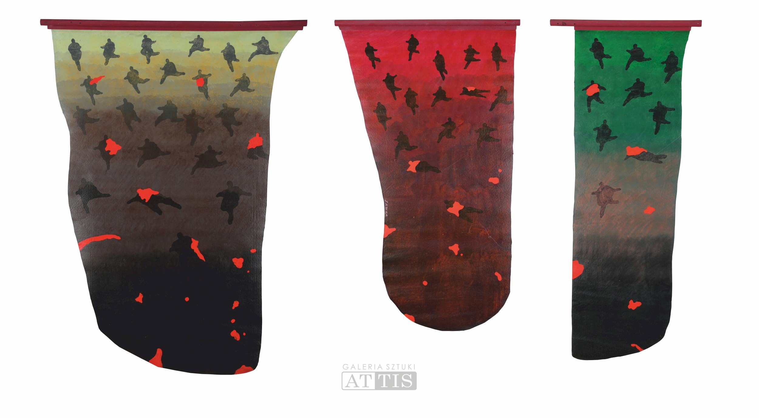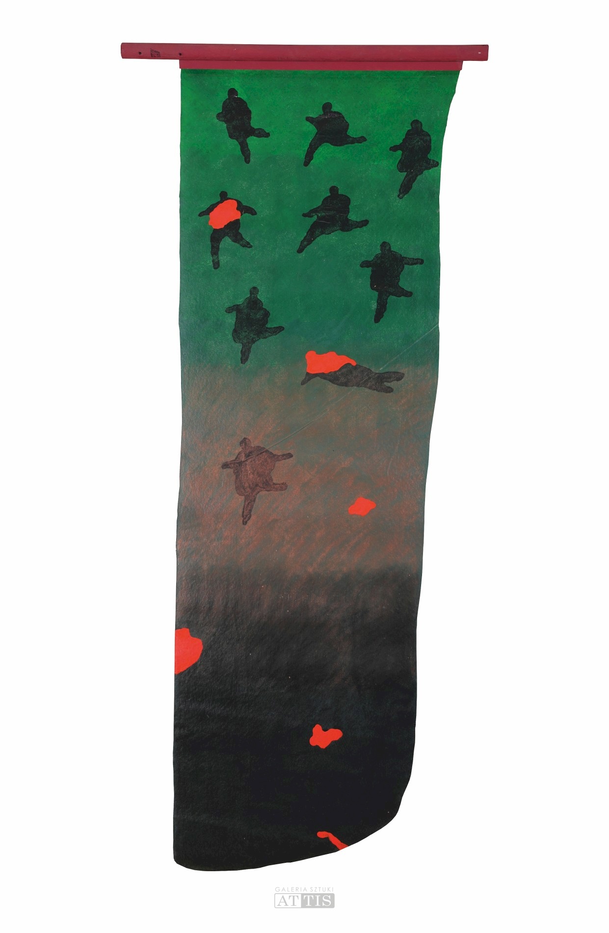 | Sygnowany na czerwonej chorągwi l.śr. "SAWKA" Na zielonej chorągwi, w górnej partii widoczny ubytek malatury (ok. 0,7 x 1,5 cm). | |