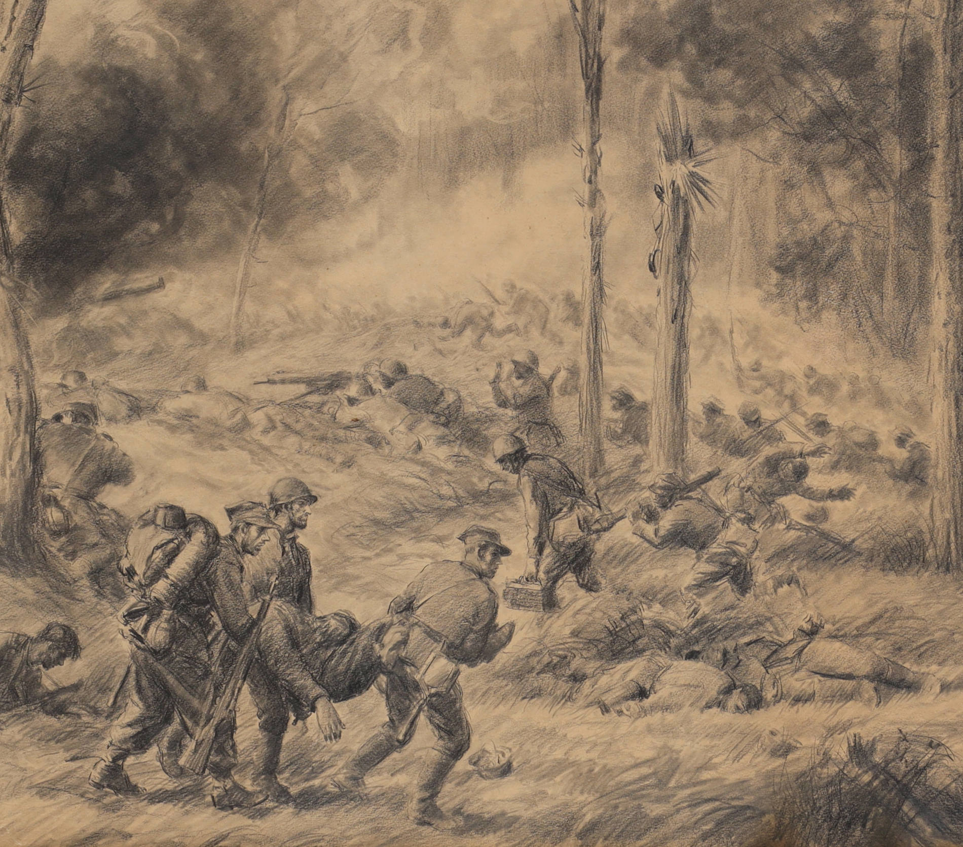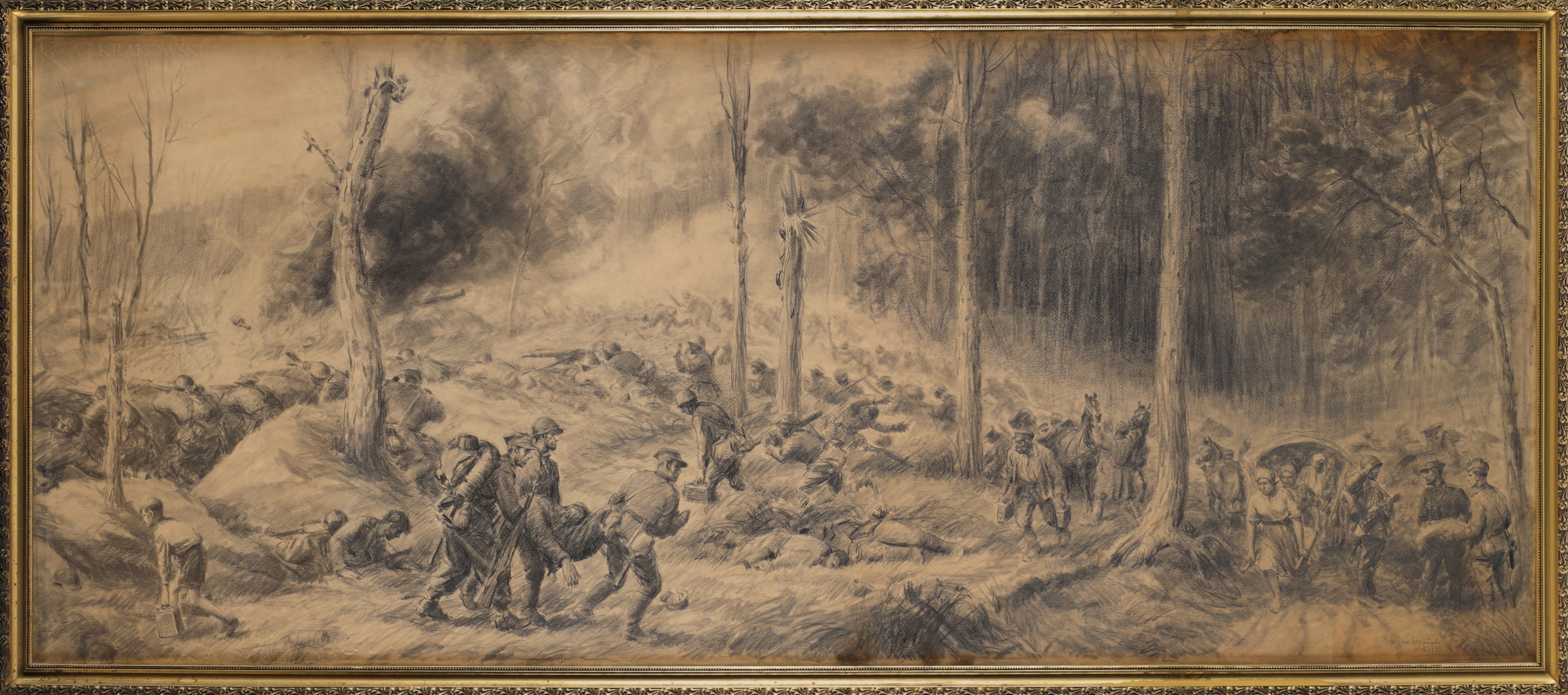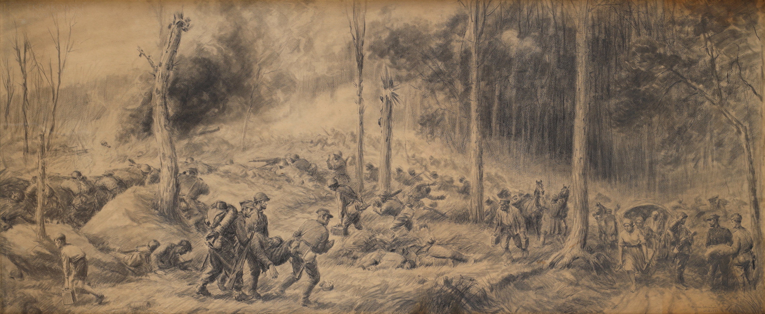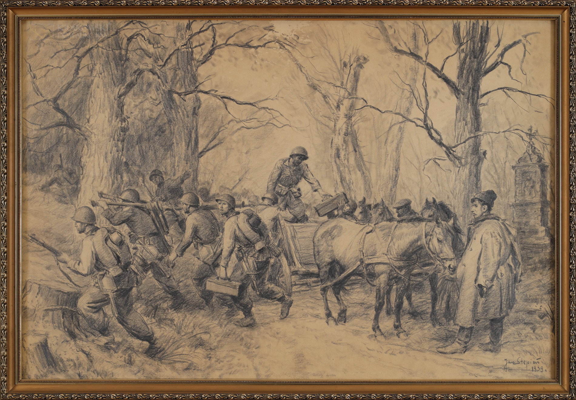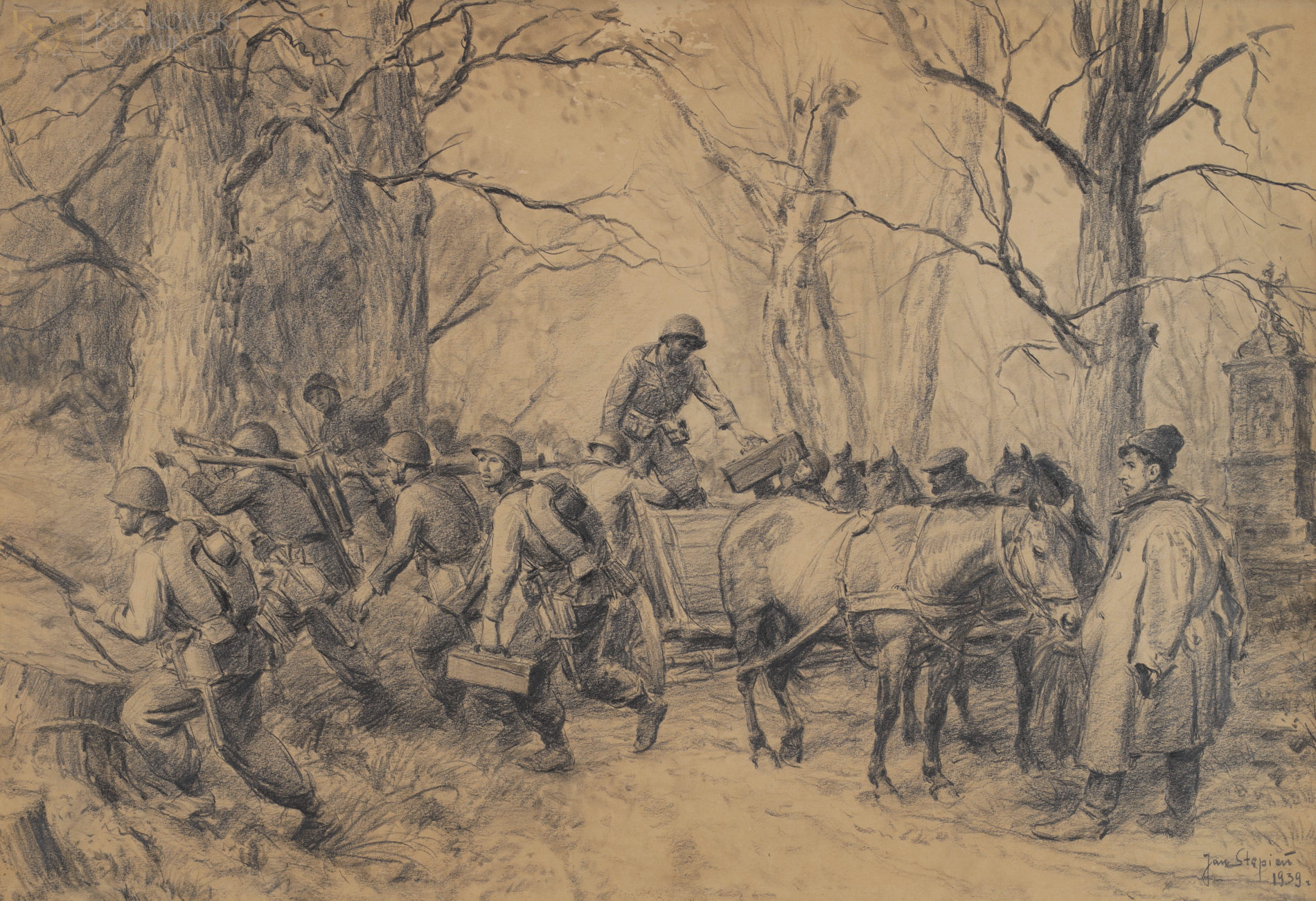 | Sygnowany i datowany p.d.: "Jan Stępień | 1939 r." Śr.g. widoczne przetarcie rysunku. | |