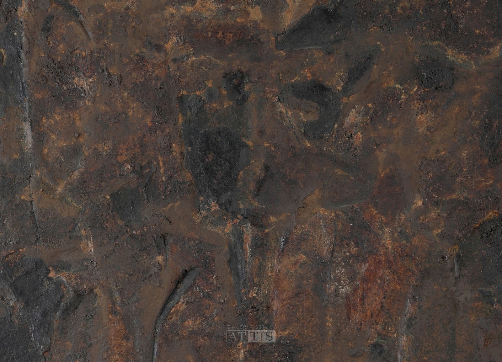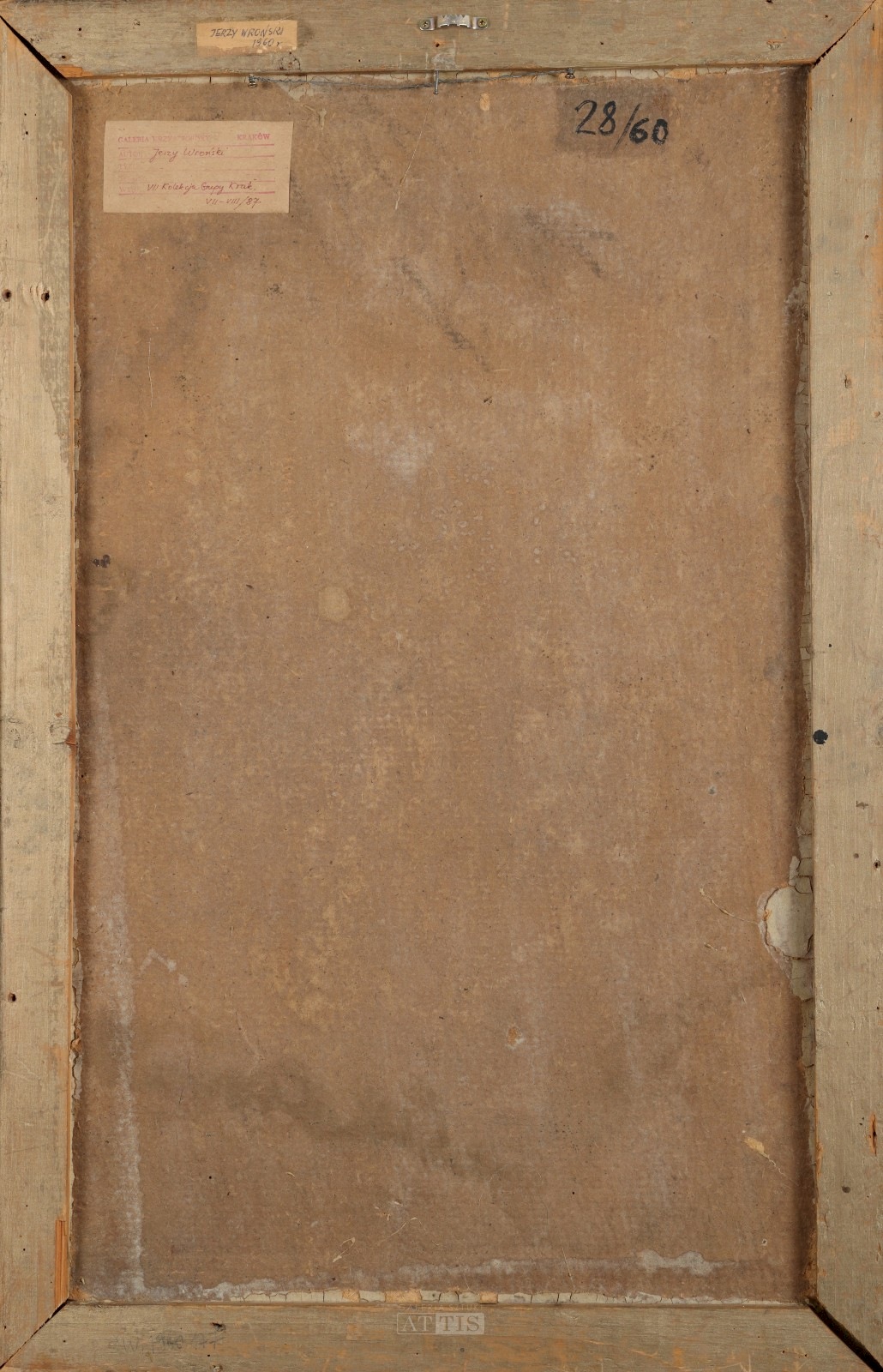 | Opisany na odwrocie: "28/60" Na odwrocie metka z Galerii Krzysztofory w Krakowie z 1987 roku. Obraz reprodukowany w katalogach: - "Malarstwo materii 1958-1963. Grupa Nowohucka", red. M. Tarabuła, Galeria Zderzak, Kraków 2000, s. 111. - "Jerzy Wroński. Obrazy-reliefy, akwarele metamorficzne, kopciogramy", Galeria Sztuki Współczesnej BWA w Katowicach, Katowice 2010, s. nn. - "Jerzy Wroński. Kopciogramy, obrazy-reliefy", Nowohuckie Centrum Kultury, Kraków 2017, s. 51. | |