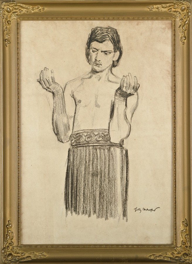 | Sygnowany p.d.: "Józef Mehoffer" Na papierze filigran w formie tarczy herbowej z kaduceuszem (l.d.). | |