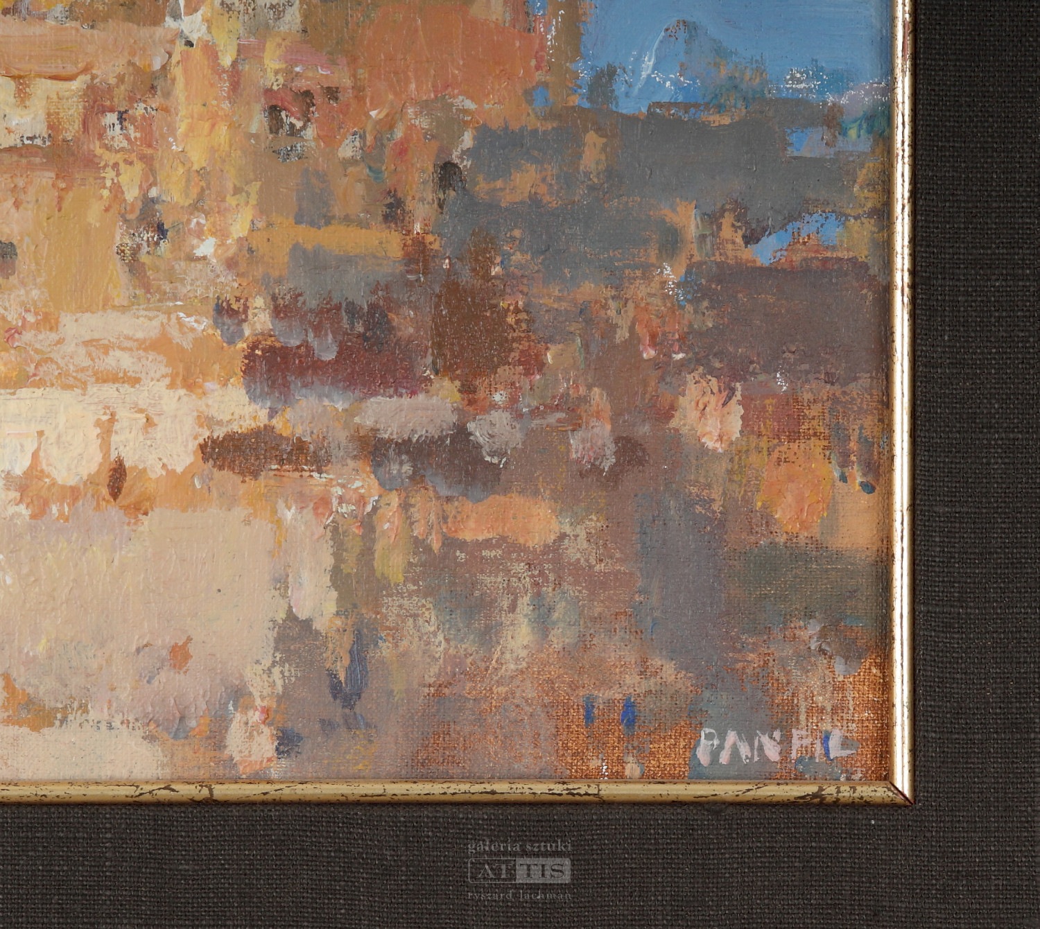 | Sygnowany l.d.: "PANFIL" Opisany na odwrocie: "ANO SIROS | AKRYL 24 X 33 - 2002 R. | J. Panfil" | |