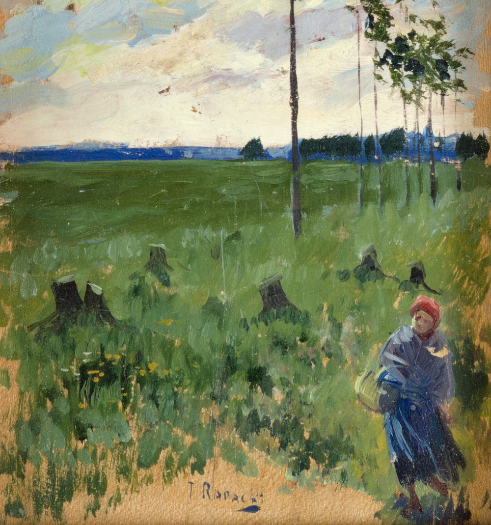 Józef Rapacki urodził się w 1871 roku w Warszawie, zmarł w 1929 roku w Olszance. Uczył się w warszawskiej Klasie Rysunkowej Wojciecha Gersona, później rozpoczął studia w pracowni Floriana Cynka w krakowskiej Szkole Sztuk Pięknych. W 1888 roku na krótki okres powrócił do Warszawy, następnie wyjechał do Monachium, gdzie kontynuował naukę w prywatnej szkole Fehra. W tym okresie kilkukrotnie podróżował do Włoch.
