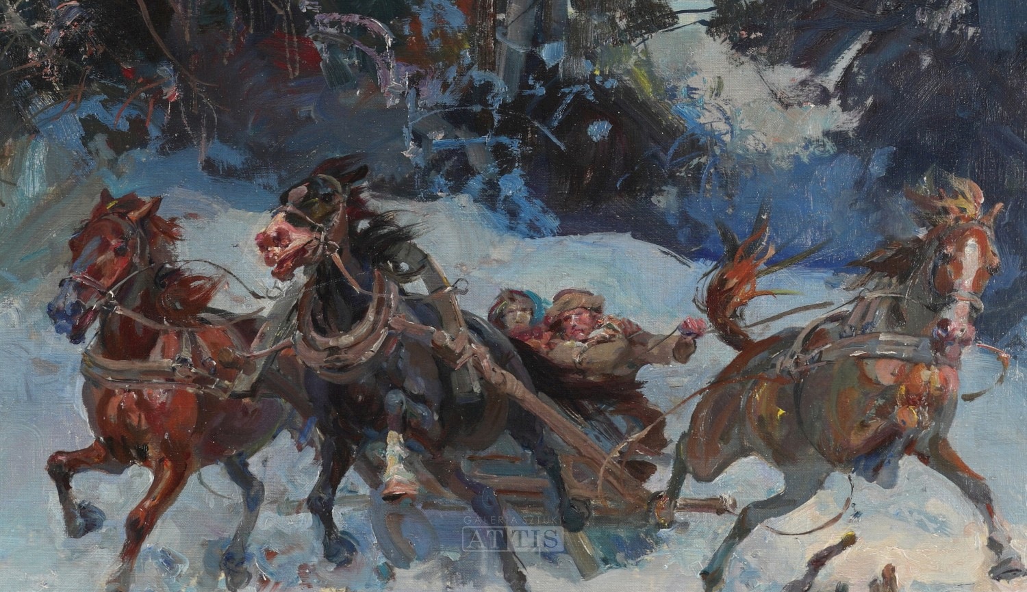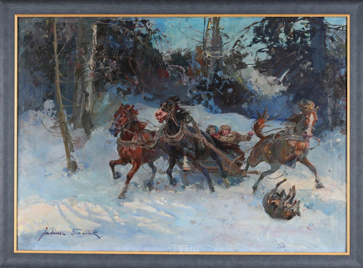Juliusz Słabiak swoje obrazy tworzył pod wpływem swoich nauczycieli i współpracowników, tj. artystycznego rodu Kossaków.