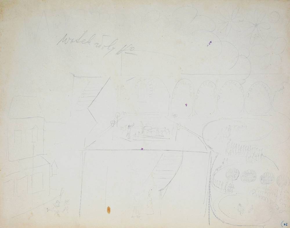 | Tytuł: | Dwustronna praca - Maneż konnej artylerii (1915) oraz szkic scenografii |