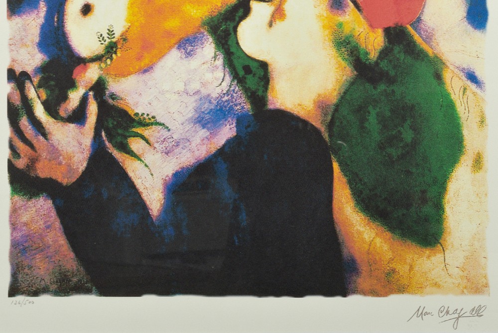 | Edycja 126/500, opisana ołówkiem l.d. Faksymile sygnatury p.d.: "Marc Chagall" Na odwrocie certyfikat autentyczności odbitki z 1998 roku. Praca została sprzedana na VI AUKCJI DZIEŁ SZTUKI (14 XII 2020) Krakowskiego Domu Aukcyjnego [zobacz wyniki] | |