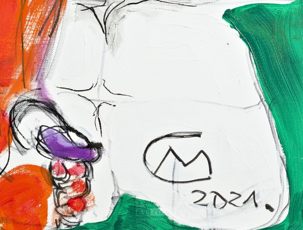 | Sygnowany i datowany p.d.: "MG 2021." Opisany na odwrocie: "SEN I OCZEKIWANIE | AKRYL/OLEJ 100 x 100 cm. | MARIAN GOŁOGÓRSKI 2021 r." | |