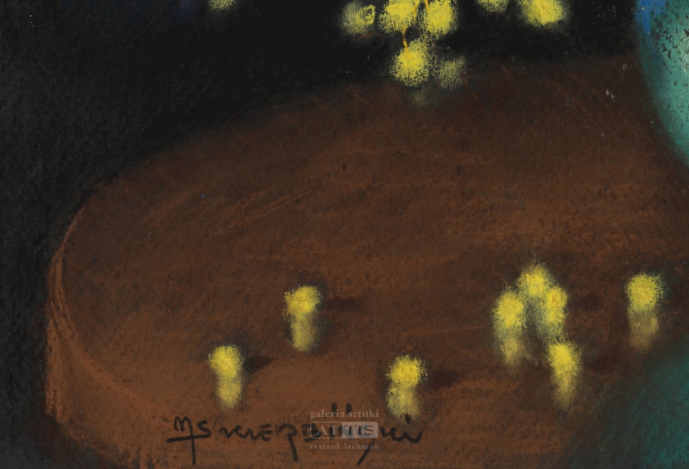 | Sygnowany l.d.: "MSZCZERBIŃSKI" Widoczny ślad po zagięciu lewego górnego naroża podłoża. | |