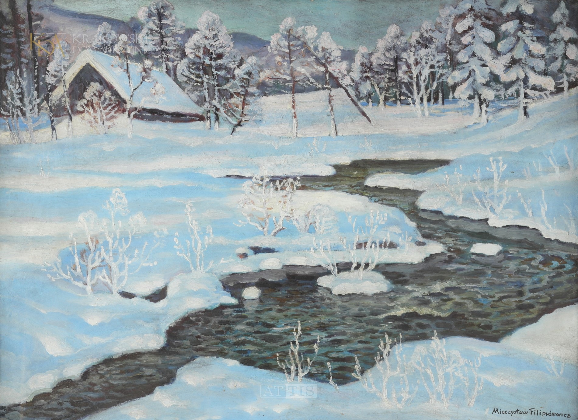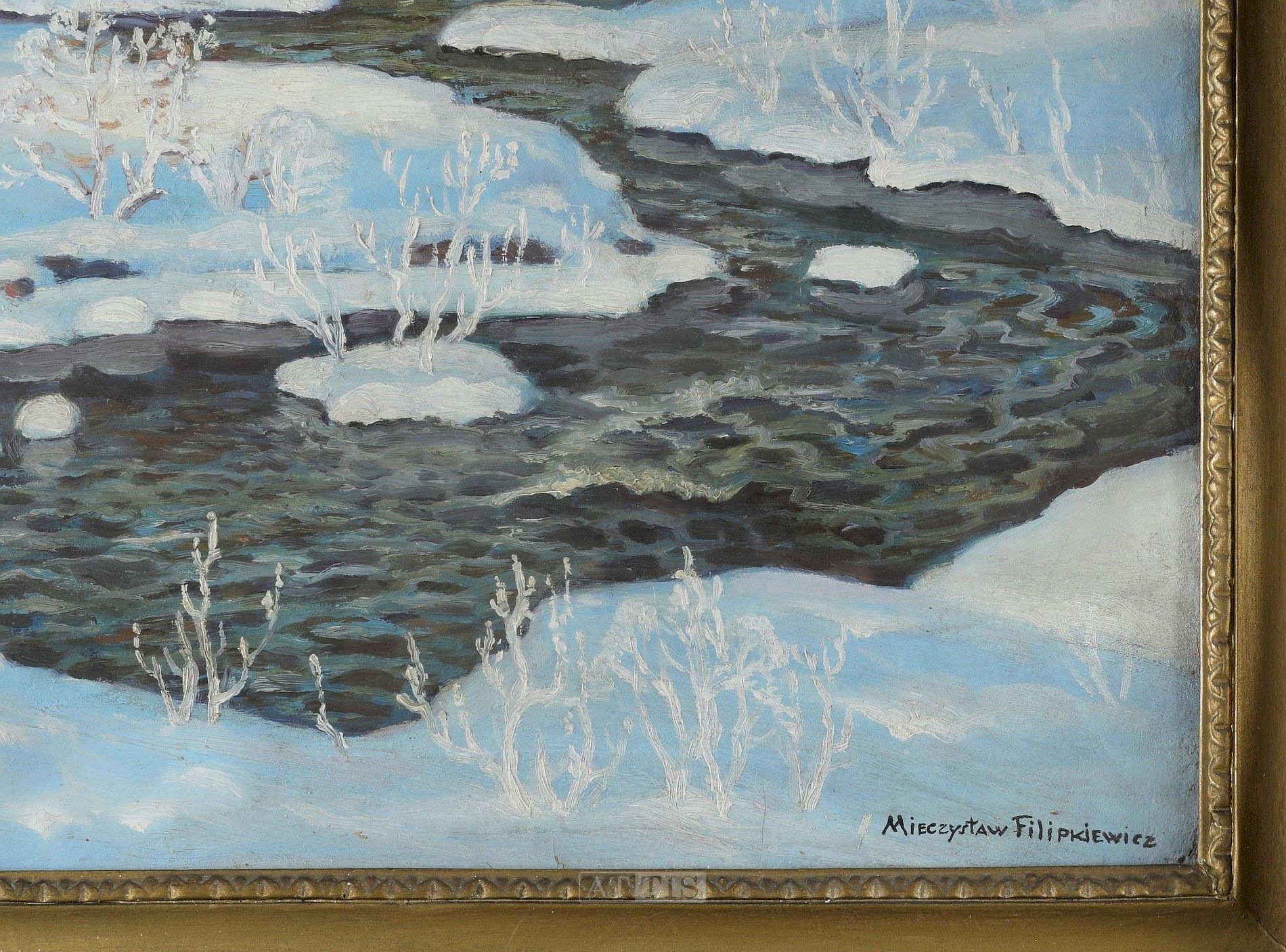 | Sygnowany p.d.: "MIECZYSŁAW FILIPKIEWICZ" Widoczne wybrzuszenie podłoża. | |
