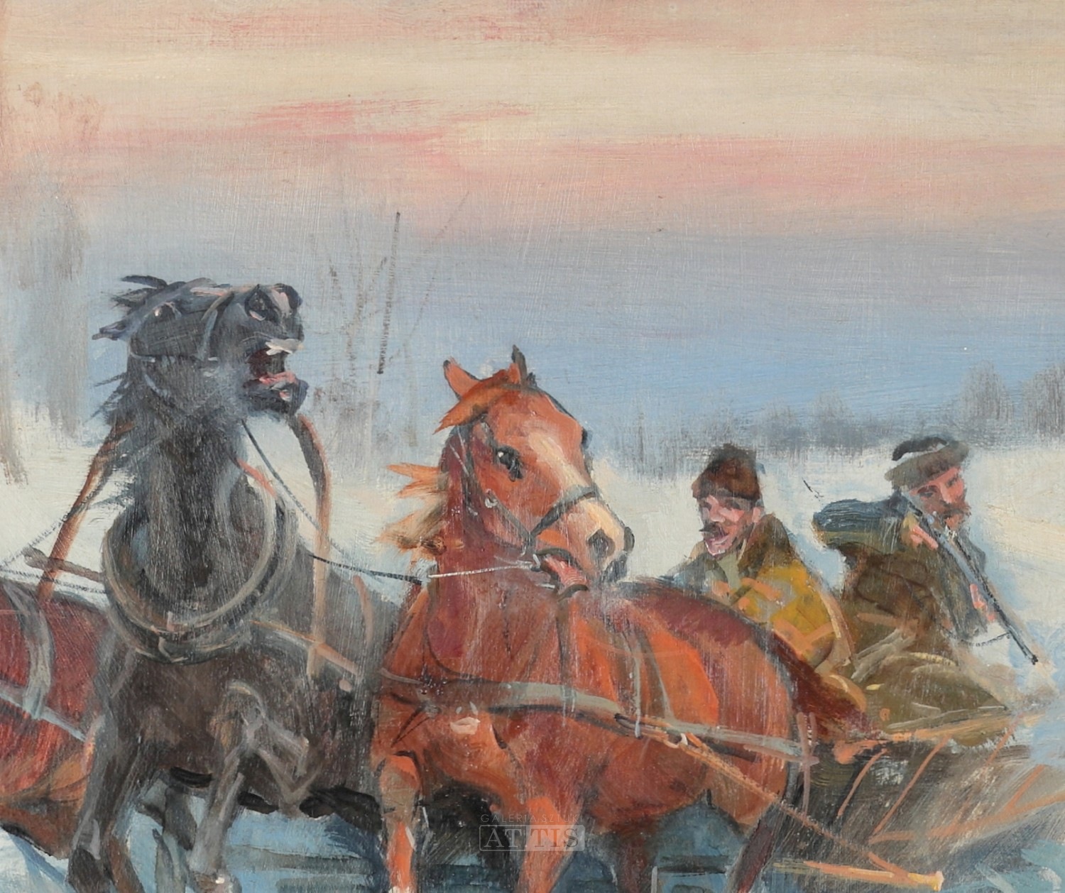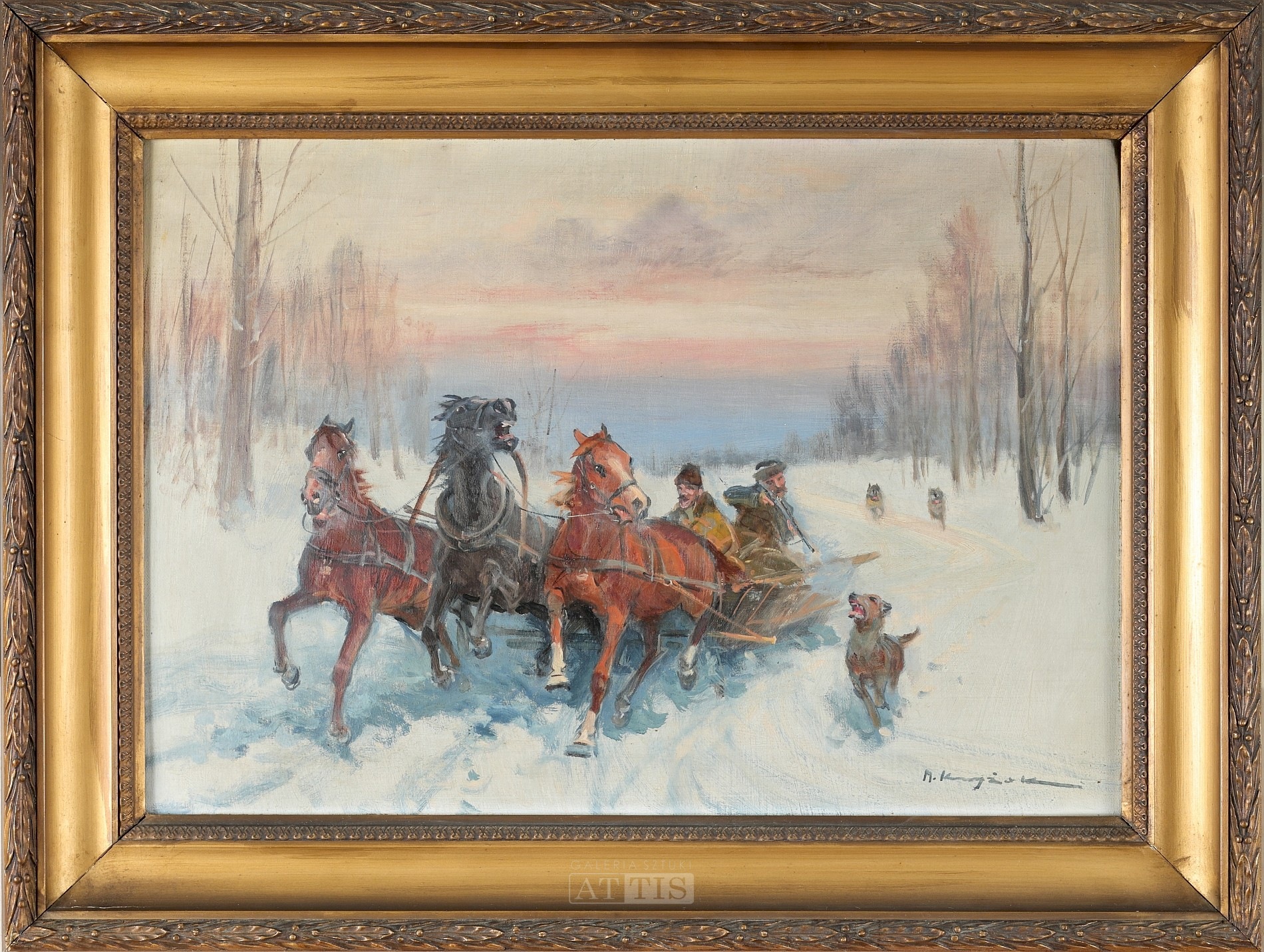 Elementem nierozłącznie niemal związanym z twórczością Mieczysława Krzyżaka są konie i konne zaprzęgi malowane przez inspiracje płynące z malarstwa mistrzów artysty z krakowskiej Kossakówki.