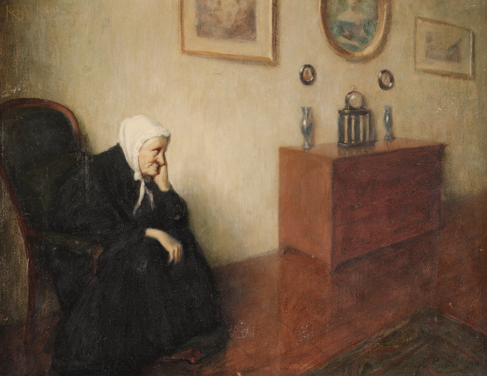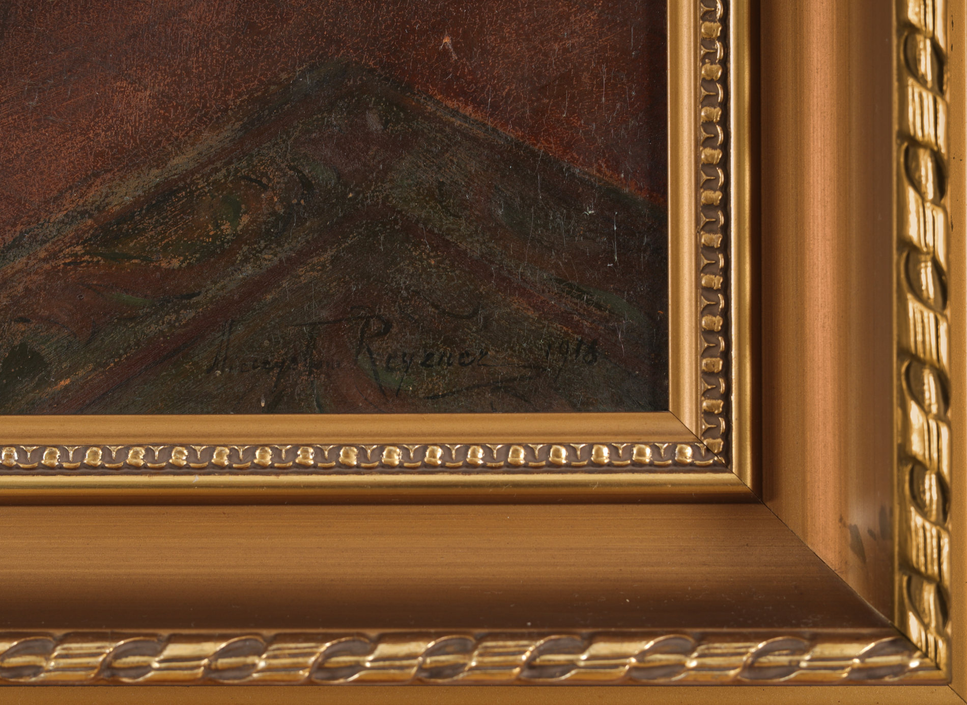 | Sygnowany i datowany p.d.: "Mieczysław Reyzner 1918." Lokalnie widoczne spękania i drobne ubytki malatury. | |