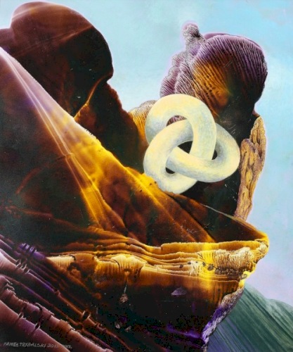 | Na odwrocie pieczątka autorska Pawła Trybalskiego "PINXIT | PAWEŁ TRYBALSKI" Opisany na odwrocie: "Z CYKLU PEJZAŻE MOŻLIWE - PIGMENT" | |
