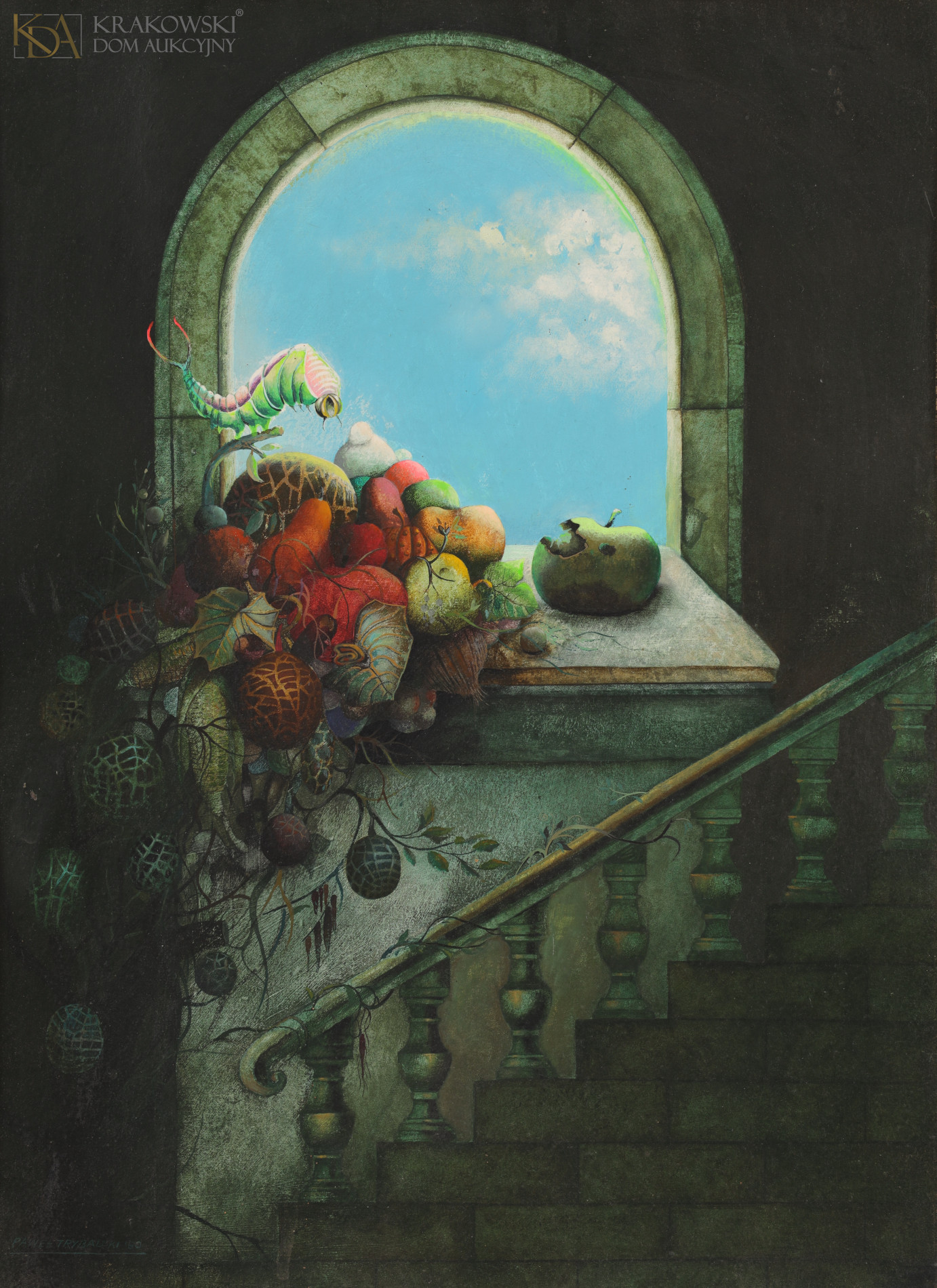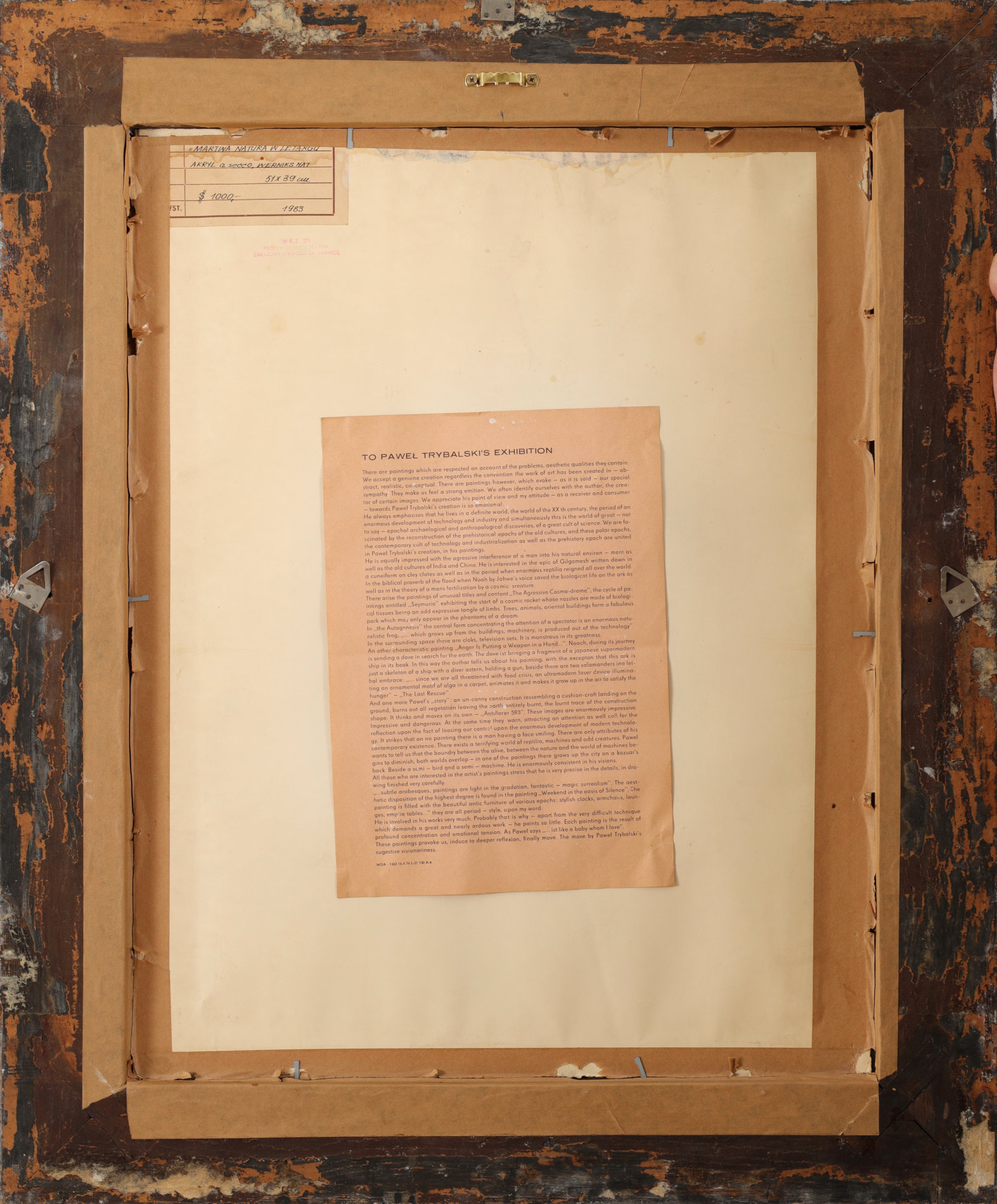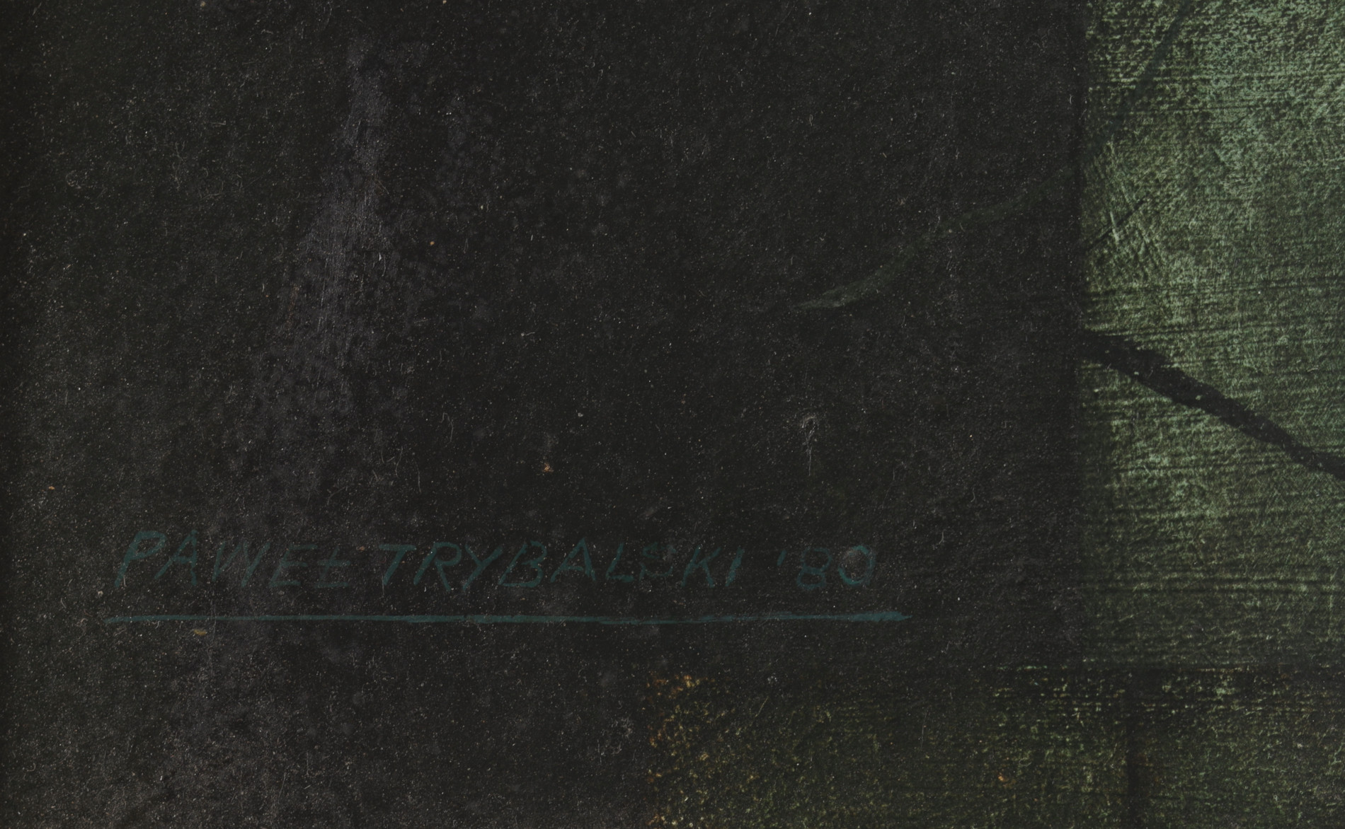 | Sygnowany i datowany l.d.: "PAWEŁ TRYBALSKI ' 80" Na odwrocie metka autorska z opisem obrazu. | |