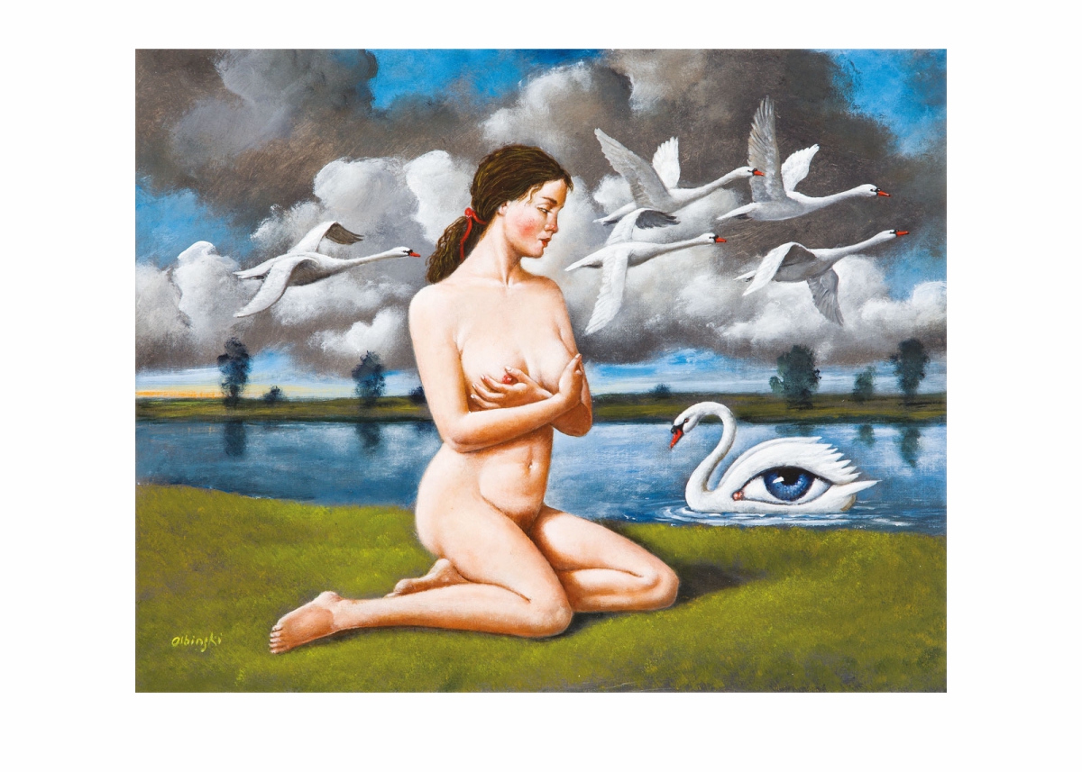 Rafał Olbiński "Leda i łabędź" - fragment