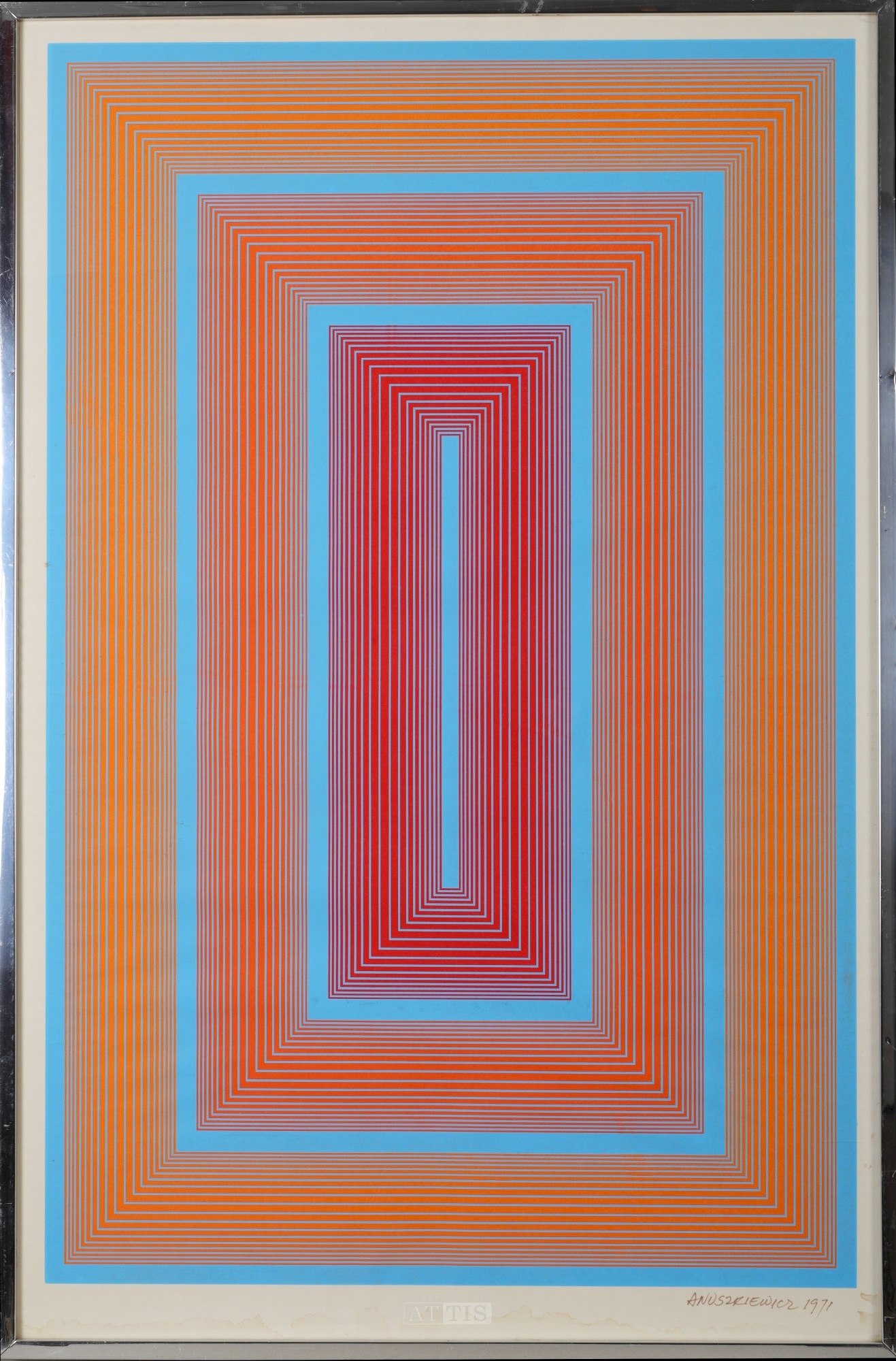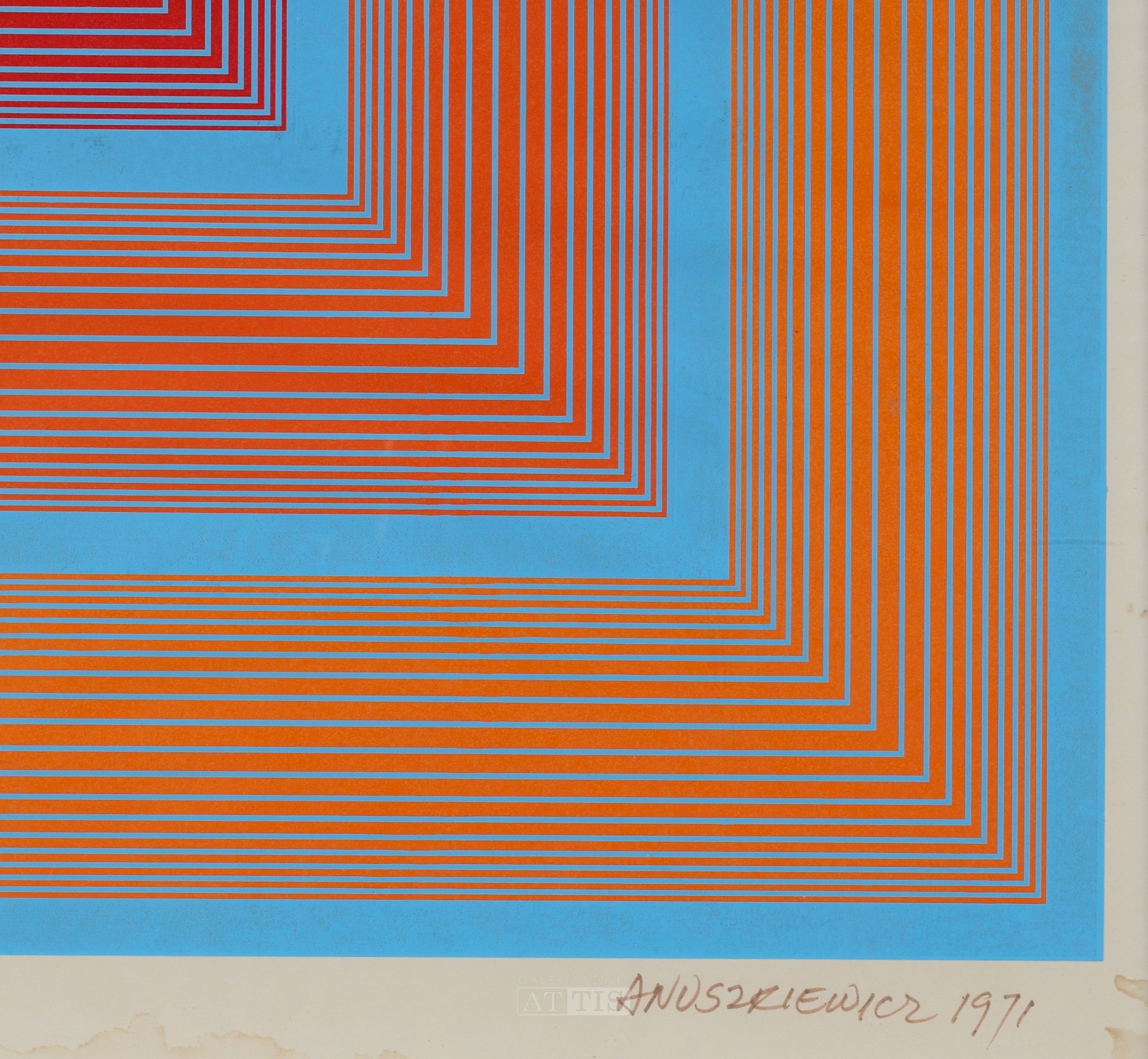 | Sygnowany i datowany flamastrem p.d.: "ANUSZKIEWICZ 1971" | |
