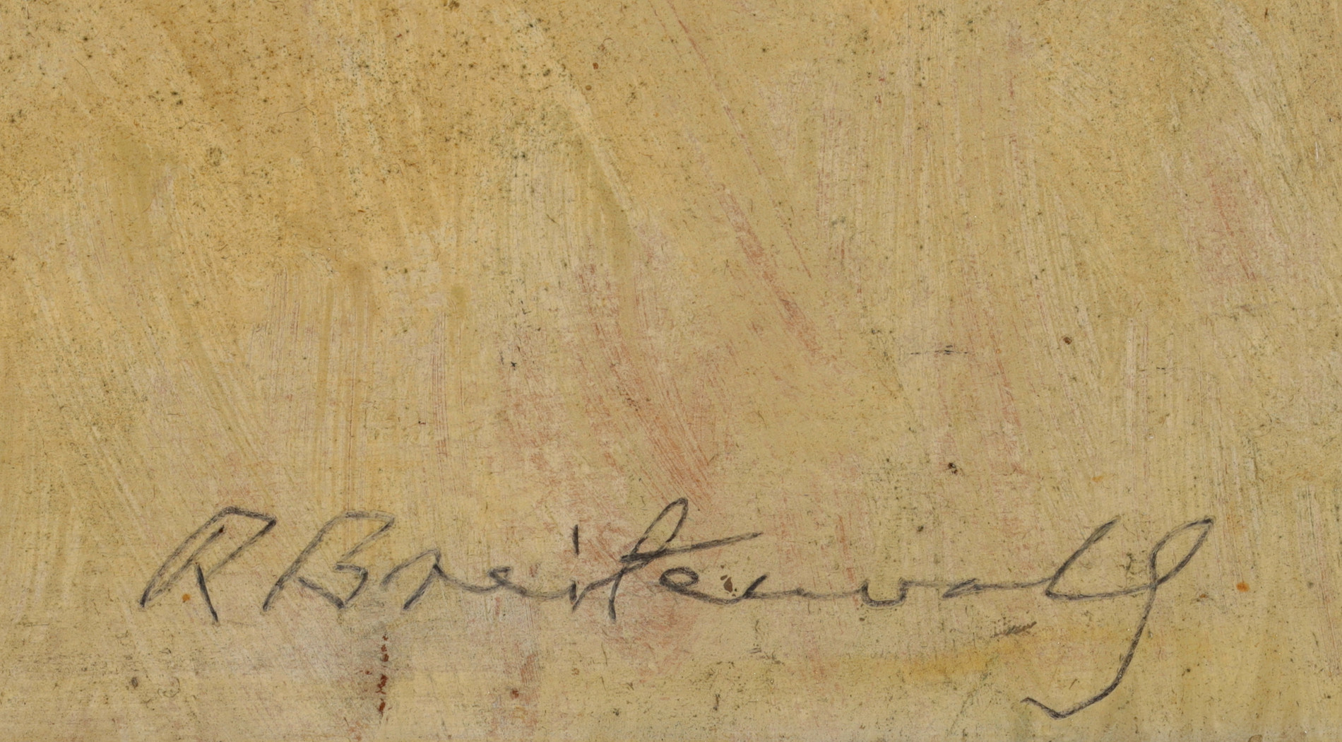 | Sygnowany ołówkiem p.d.: "RBreitenwald" Widoczne zabrudzenie malatury, niewielkie przetarcia farby (l.d.) oraz ślad po gwoździu (śr.g.). | |