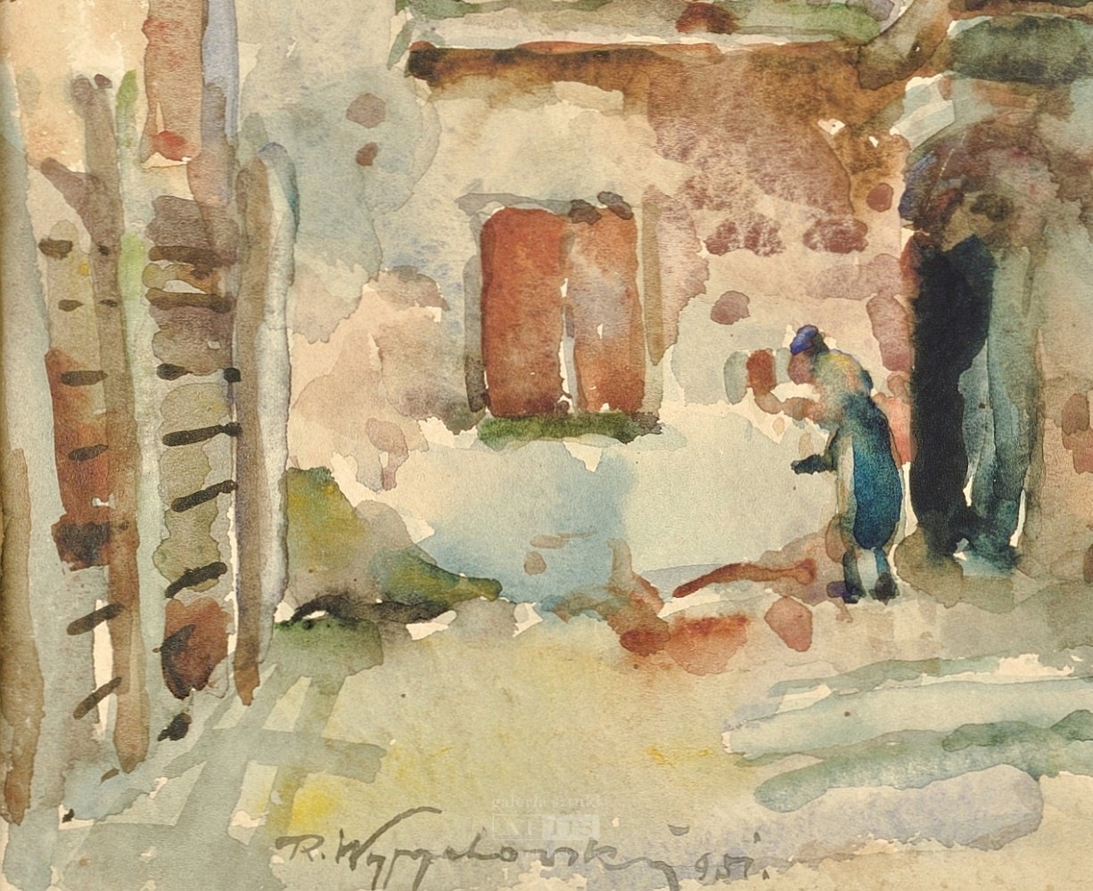 | Technika: | akwarela, ołówek, papier naklejony na tekturę |