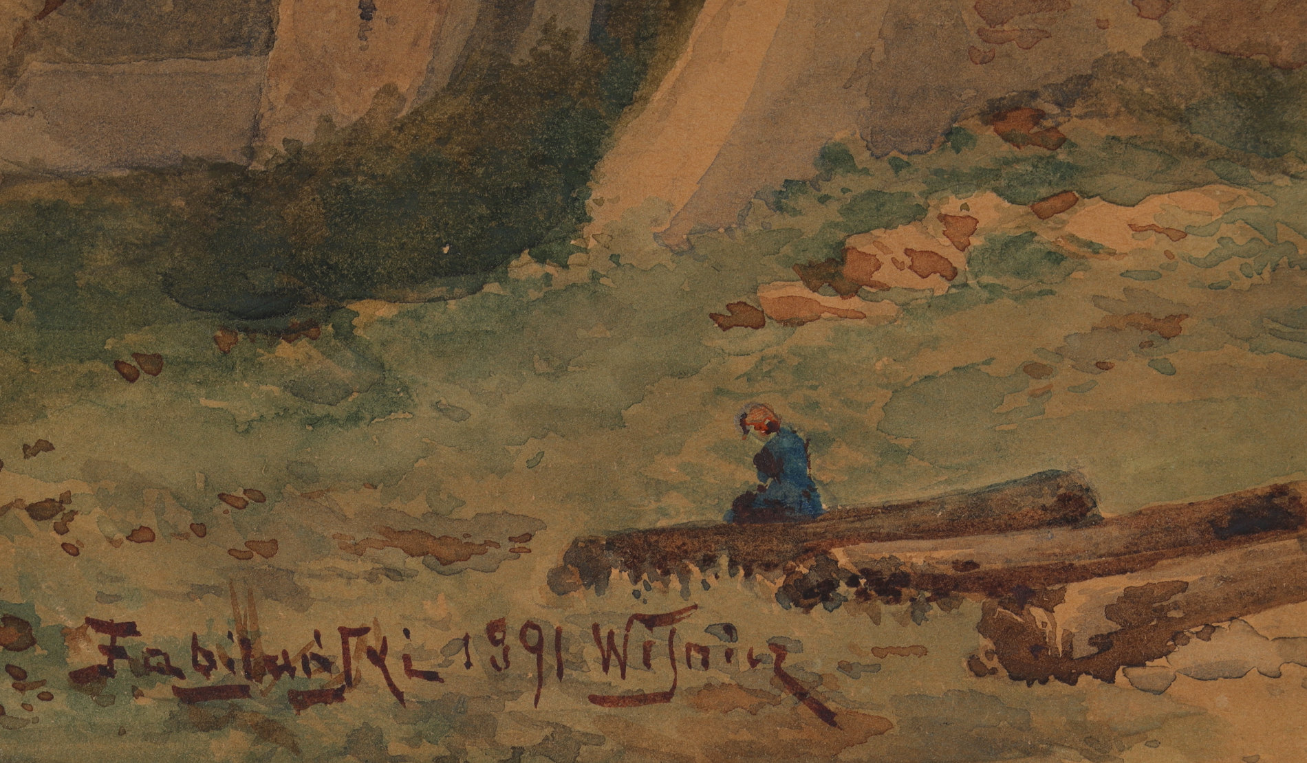 | Sygnowany i opisany l.d.: "Fabijański 1891 Wiśnicz" Widoczne niewielkie uszkodzenie papieru p.d. | |