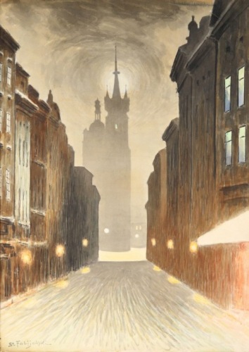 Charakterystyczne dla twórczości Stanisława Fabijańskiego są monochromatyczne widoki Krakowa i jego zabytków.
