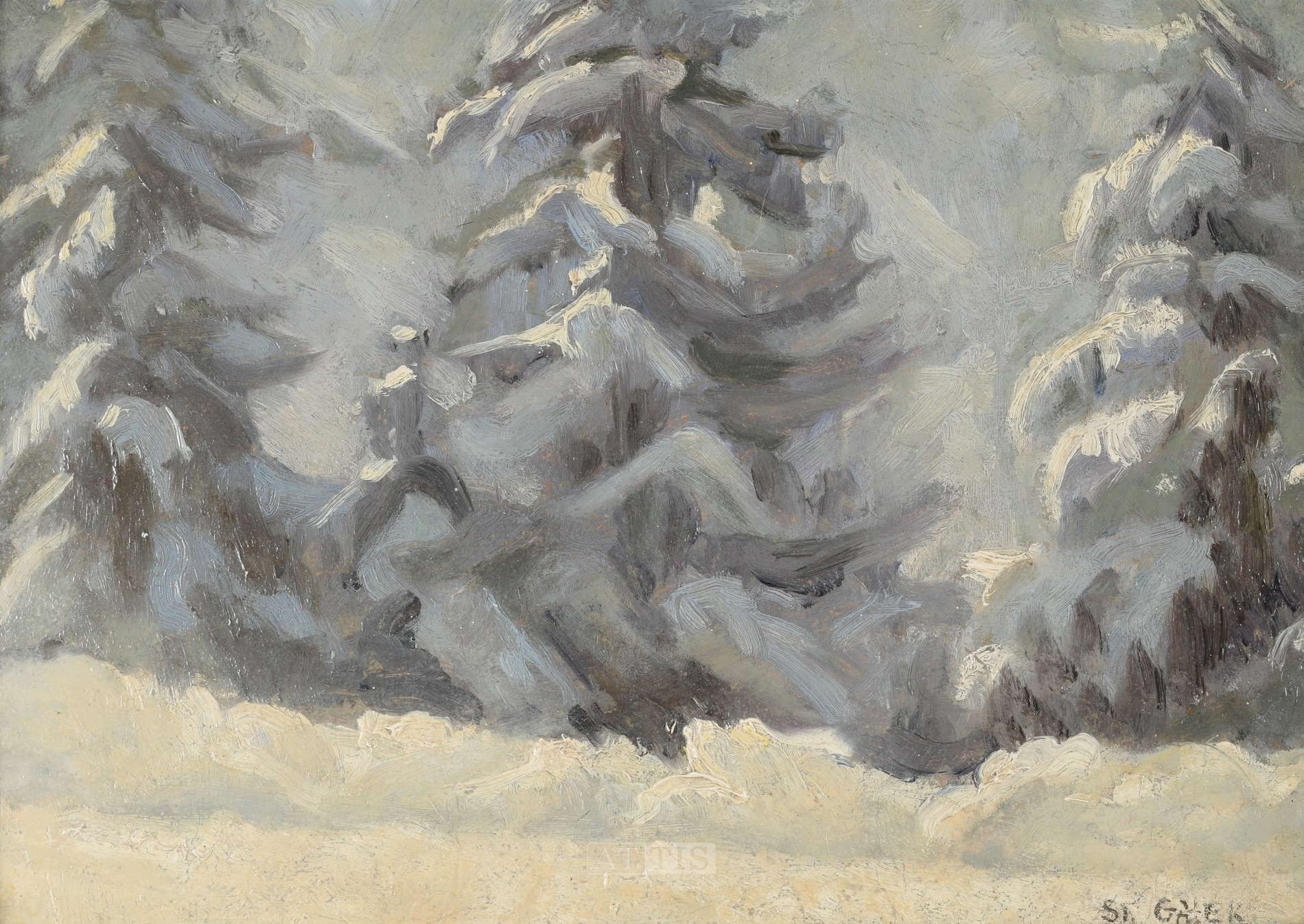 Stanisław Gałek urodził się w 1876 roku w Mokrzyskach, zmarł w 1961 r. w Zakopanem. W latach 1899 - 1900 studiował w Akademii Sztuk Pięknych w Krakowie w pracowni Jana Stanisławskiego i Jacka Malczewskiego. Naukę kontynuował w Königliche Kunstgewerbeschule w Monachium i w École Nationale des Beaux-Arts w Paryż pod kierunkiem Jeana Léona Gérôme’a. Artysta należał do towarzystwa „Sztuka Podhalańska” oraz był członkiem TZSP w Warszawie. W roku 1910 podróżował do Włoch (pejzaże z Capri) i na Krym. W latach 1912-1916 nauczał w Szkole Zawodowej Kołomyi, a w 1916-1931 w Szkole Przemysłu Drzewnego w Zakopanem.